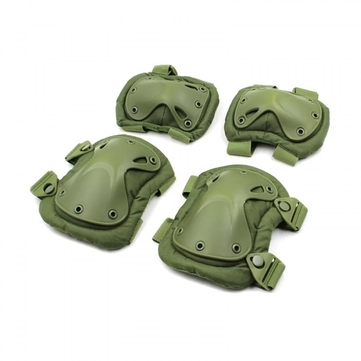 Тактична захист наколінники і налокітники. Спочатку, такі набори масово випускалися, як захисне екіпірування військових, щоб пом'якшити навантаження і запобігти травми. Наколінники надійно і міцно захищають колінні суглоби, які схильні до великого навантаження при бігу і ходьбі. Пластикова вставка з надміцного матеріалу надійно оберігає від травм і ліктьові суглоби. Зверніть увагу на Х-подібну форму накладок. Така унікальна форма робить ці деталі тактичної захисту гнучкими і чудово поглинає силу удару. Пом'якшує силу удару і амортизує прокладка. Крім того, наколінники і налокітники довговічні, так як вони призначені для проходження через сувору пустелю і скласти околиці, з великою кількістю каменів і бруду. Тканинна частина оливкового кольору виконана з щільного поліестеру, який прекрасно пропускає повітря. Два ременя зі зворотного боку забезпечують додатковий комфорт і безпеку. Широкі ремінці з еластичного матеріалу щільно прилягають до тіла. Завдяки регульованим ремінцям наколінники і налокітники підійдуть для різних розмірів.