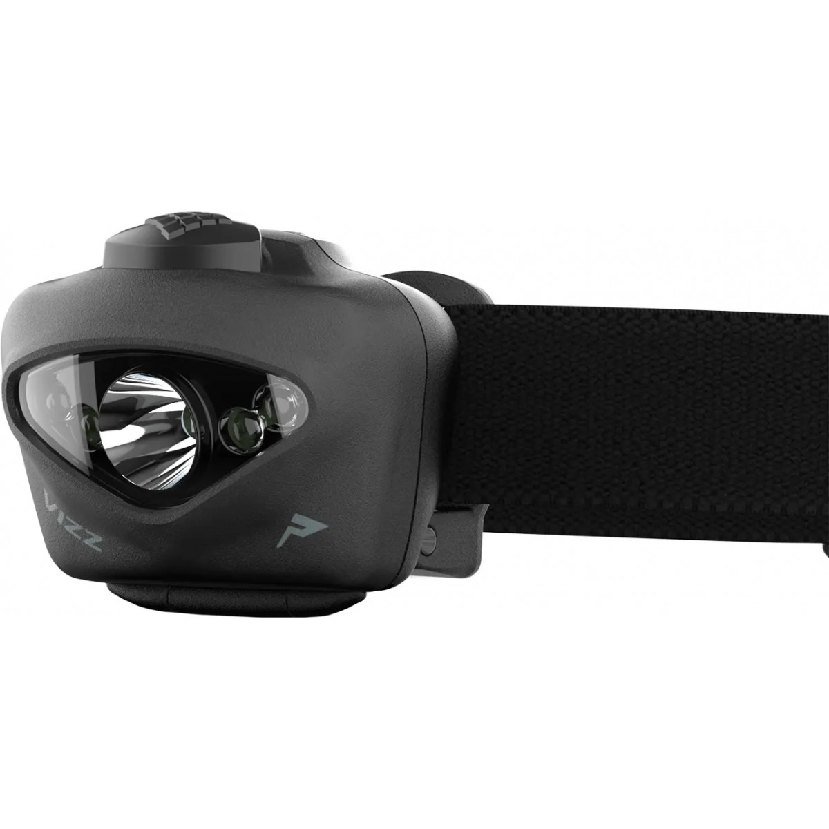 Vizz RGB - потужний налобний ліхтар, в якому поєднуються міцний корпус, надійна конструкція та універсальність світла, завдяки 5 режимам роботи: 2 режими білого світла, а також червоне, зелене та синє світло. В режимі потужного білого світла ліхтар забезпечує світловий промінь в 550 люменів з максимальною відстанню до 95 метрів. Vizz RGB має клас захисту IPX7 і витримує занурення у воду на глибину до одного метра. Цифрове блокування запобігає випадковому ввімкненню, коли ліхтар не використовується. Працює ліхтар від трьох батарейок типу ААА та має індикатор розрядженості.