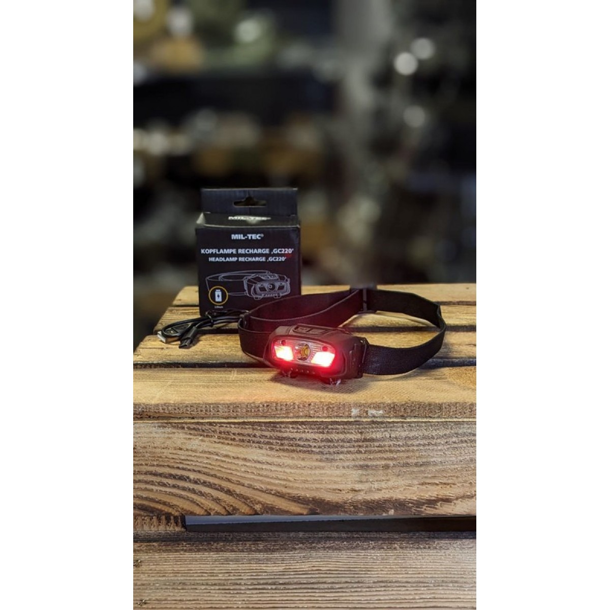 Налобний ліхтар від бренду MIL-TEC (Німеччина) з вбудованим акумулятором і датчиком руху. На мінімальному режимі світить до 25 годин. Має яскраве біле і нічне червоне світло.
