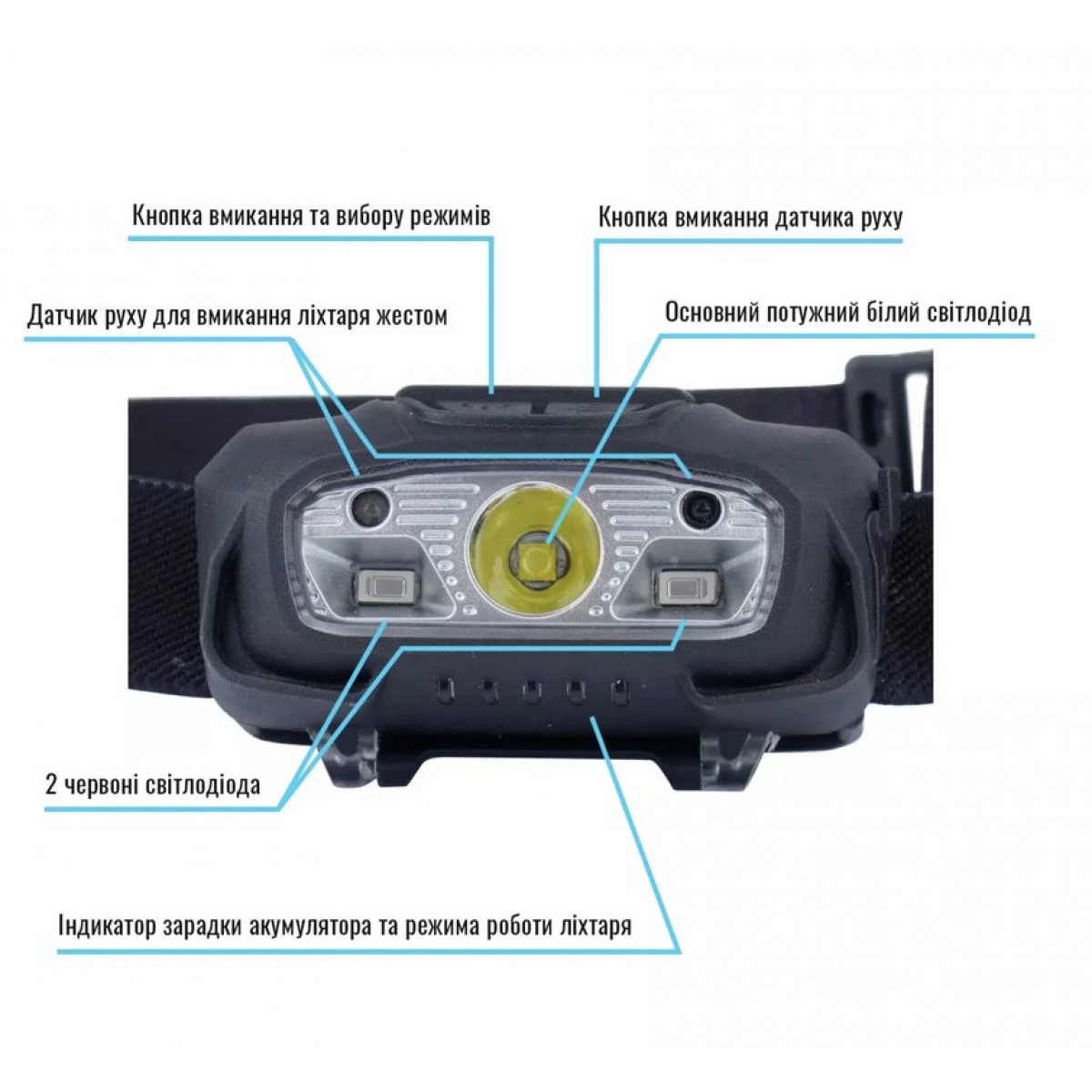 Окрема кнопка вмикає датчик руху. У такому режимі ліхтар вмикається і вимикається, якщо піднести руку до світлодіодів.