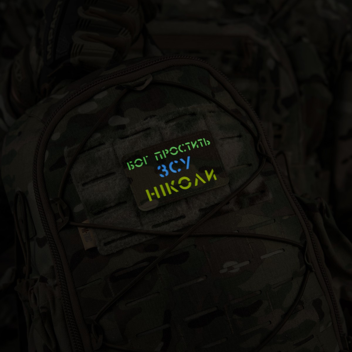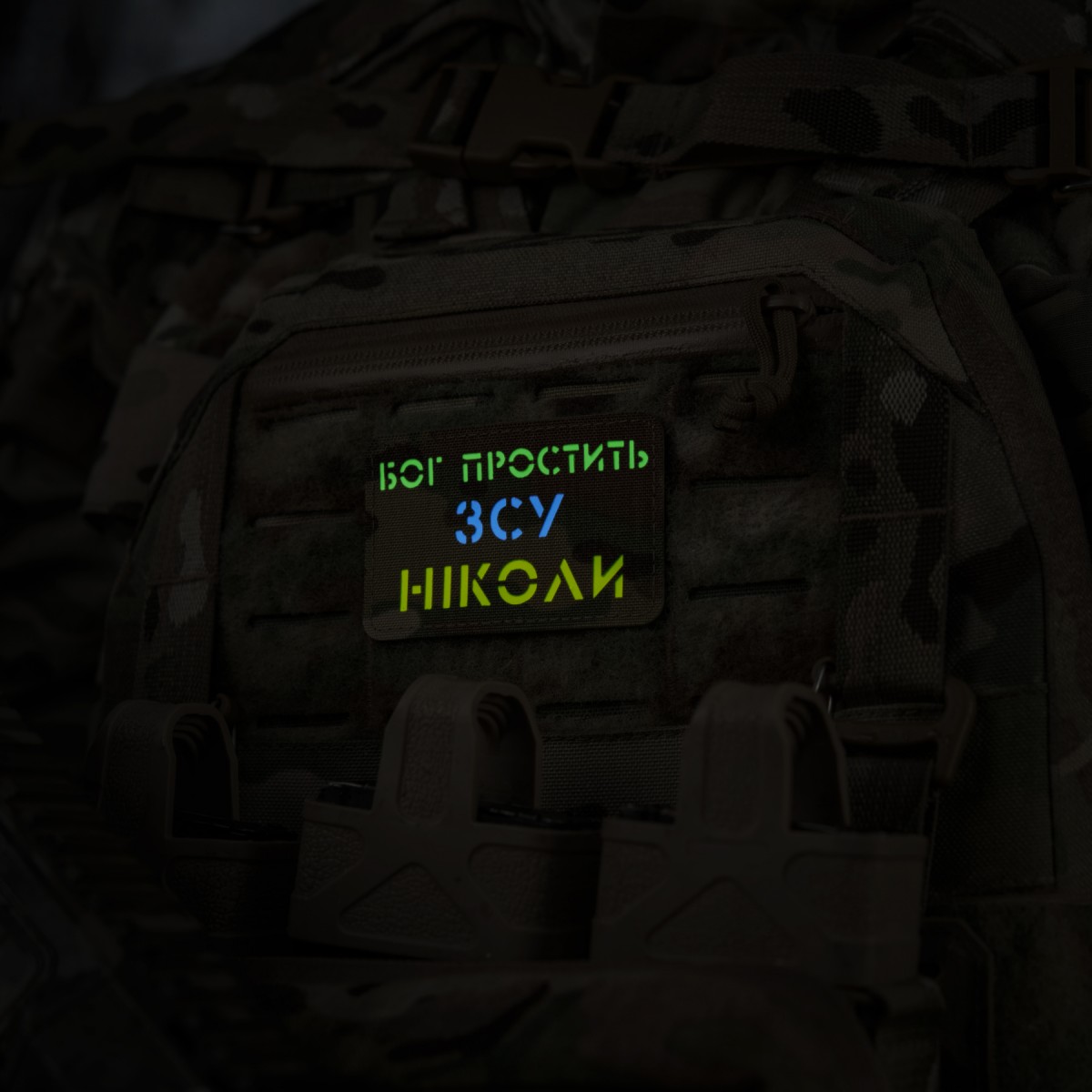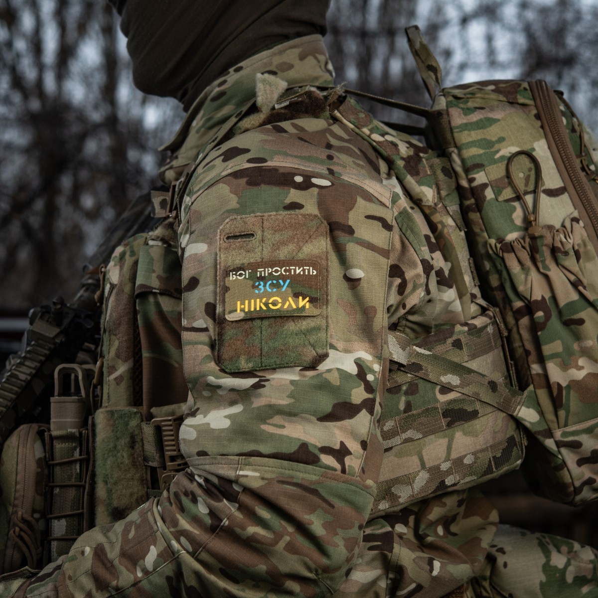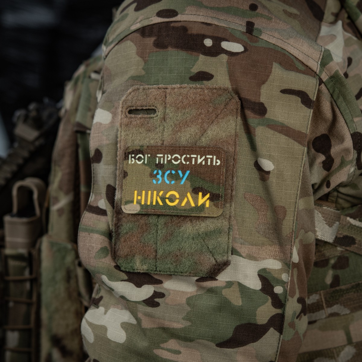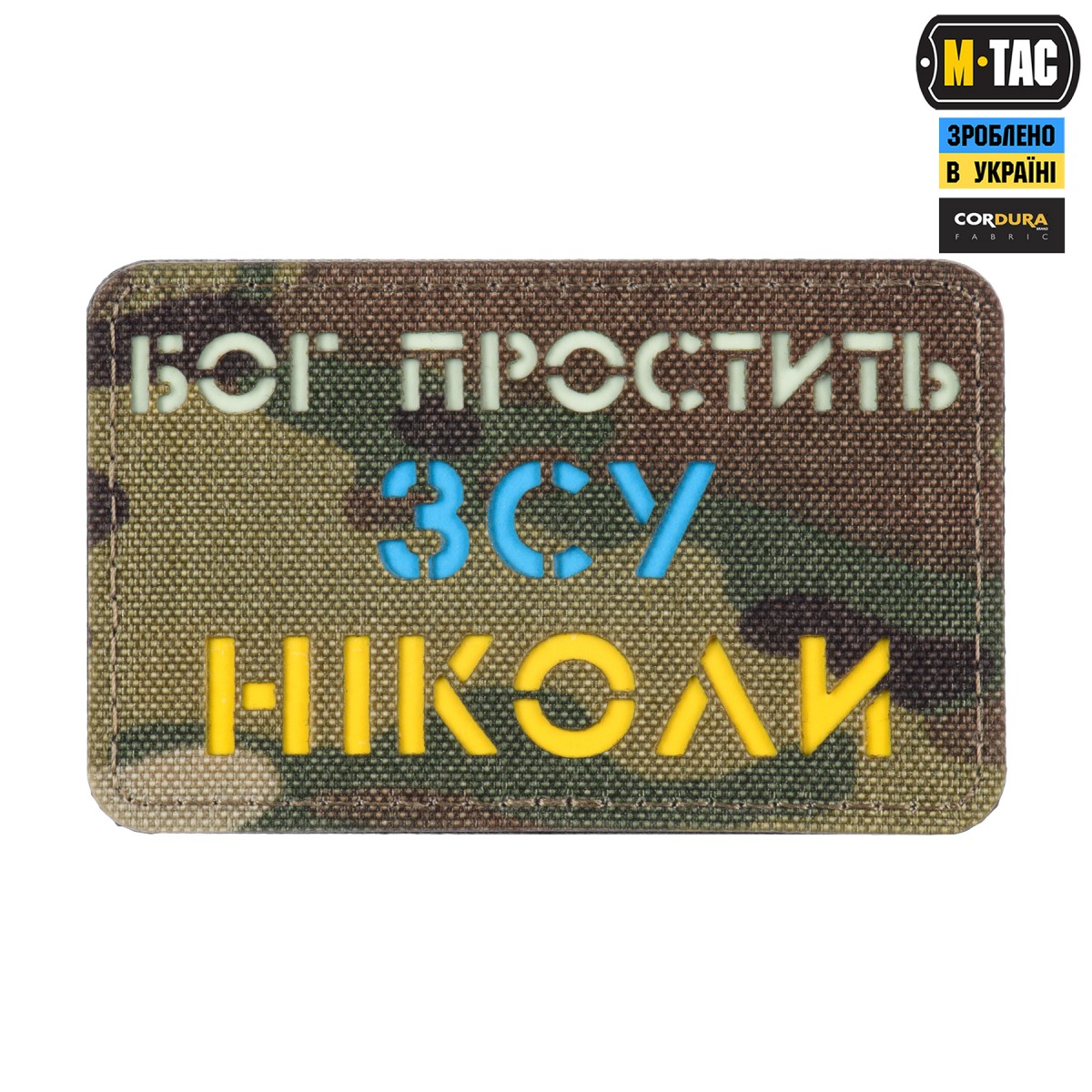 Опис M-Tac нашивка Бог простить, ЗСУ ніколи Multicam/Yellow/Blue/GID