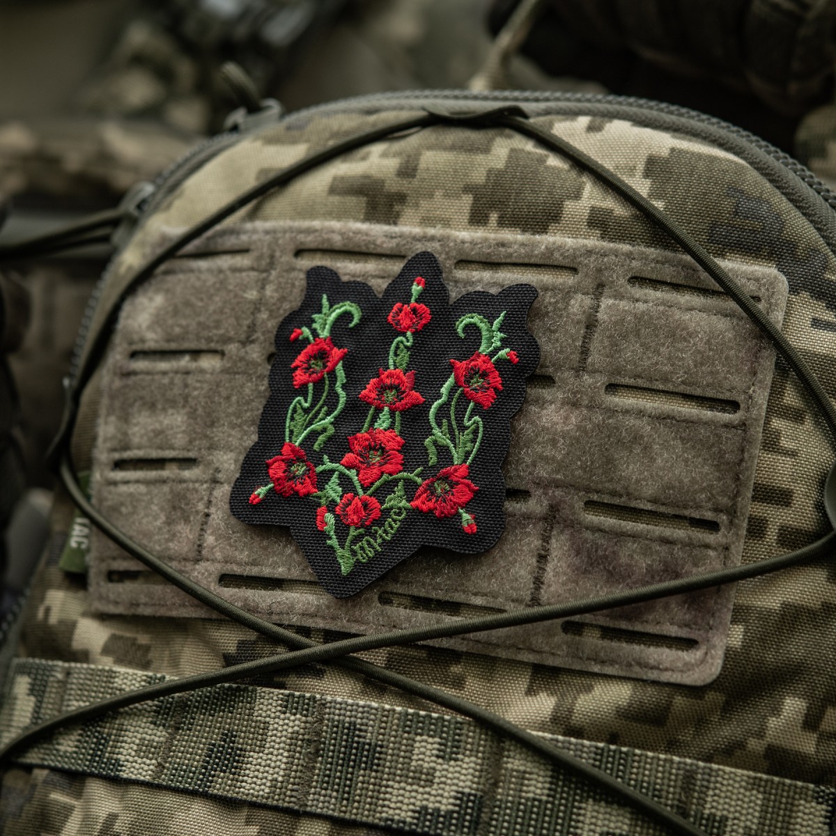 Опис M-Tac нашивка Тризуб Червоний мак (вишивка) Black