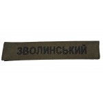 Нашивка з прізвищем виготовляється на замовлення на будь-яке прізвище на будь-якій основі (олива, піксель, койот)