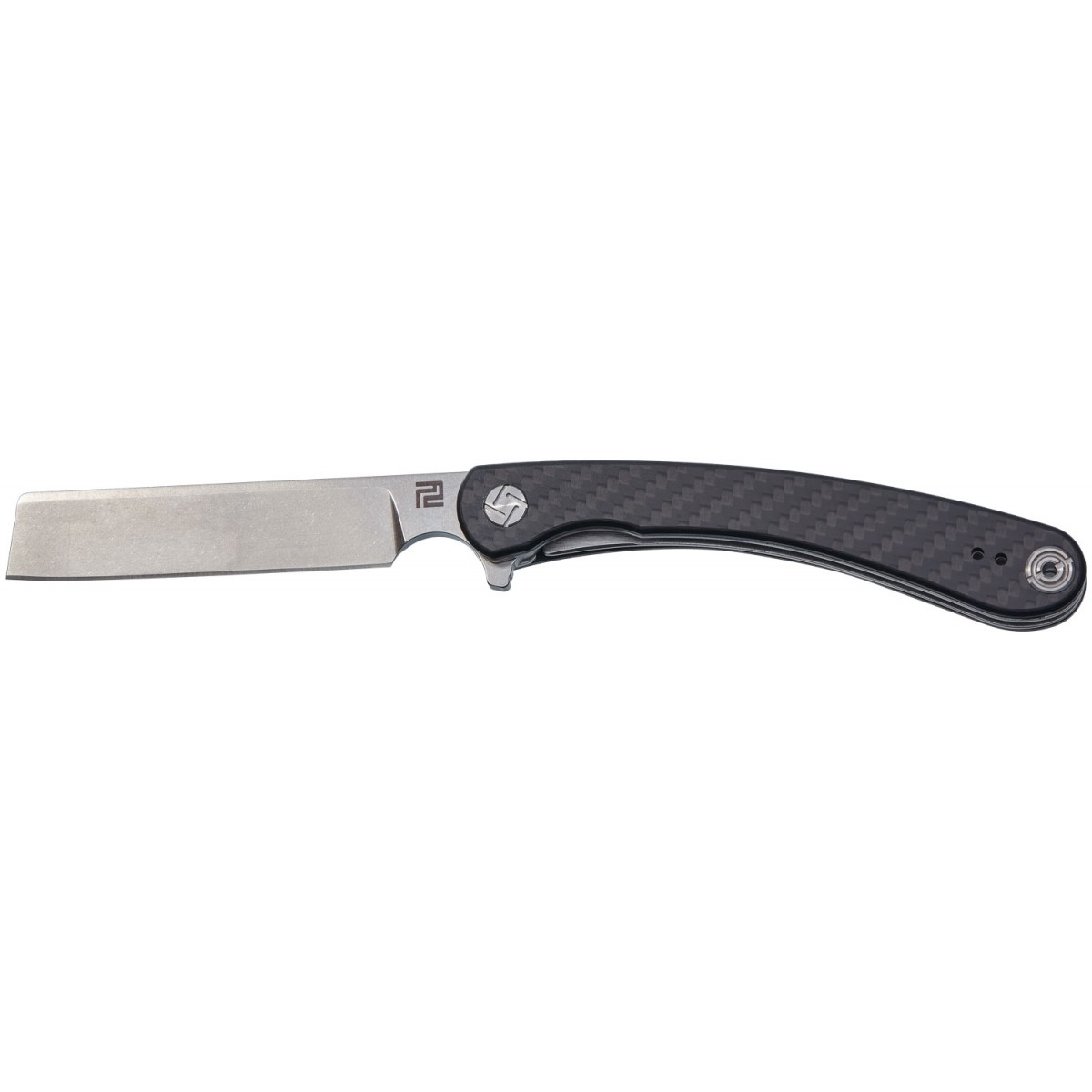 Накладки на рукоять виконані з вуглецевого волокна, що забезпечує стійкість до корозії і додає ножу привабливий зовнішній вигляд.