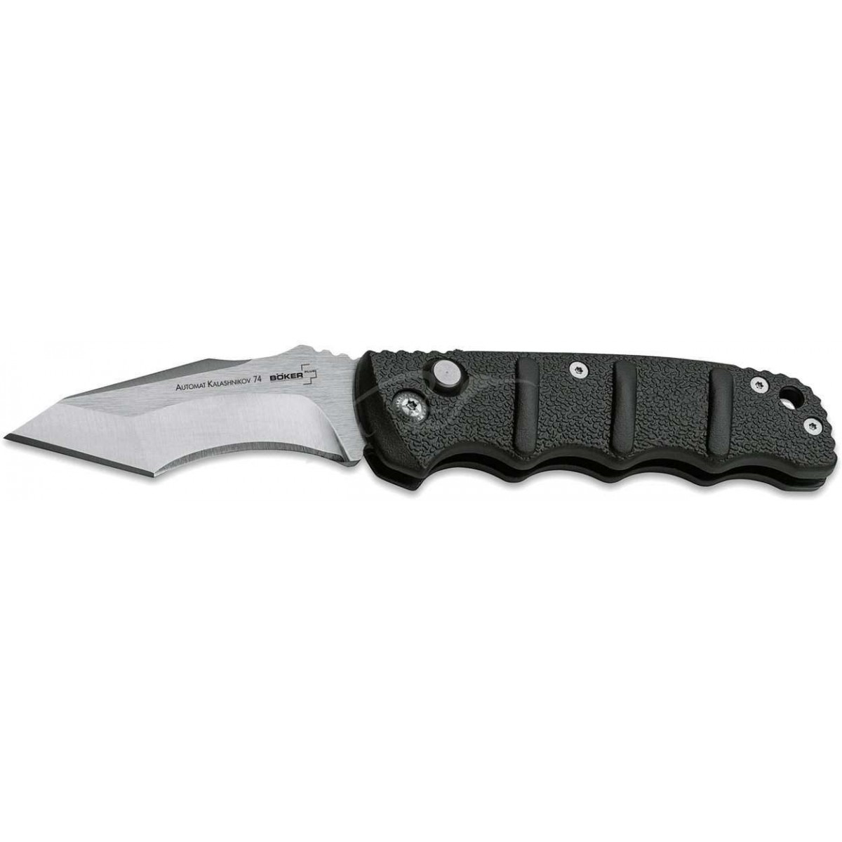 Серія ножів AK присвячена самому популярному зброї у світі - легендарного Автомата Калашникова. Всі ножі, що носять ім'я Калашникова, офіційно ліцензовані.Ніж AKS 74 гармонійно об'єднав в собі риси штыкового ножа автомата АК-74 (зокрема рукоятку) і оригінальний клинок копьеподобной форми. Таке поєднання забезпечує одночасно високі показники реза, а також надійність та комфорт при утриманні. На рукоятку нанесені насічки і подпальцевые виїмки для додаткової фіксації ножа в руці. Але основною "родзинкою" ножа є підпружинений клинок, який автоматично висувається при натисканні кнопки на ручці.