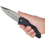 Фіксація клинка здійснюється замком Liner-Lock, пластина якого була трохи збільшена, а також має насічку для більш зручного оперування однією рукою.