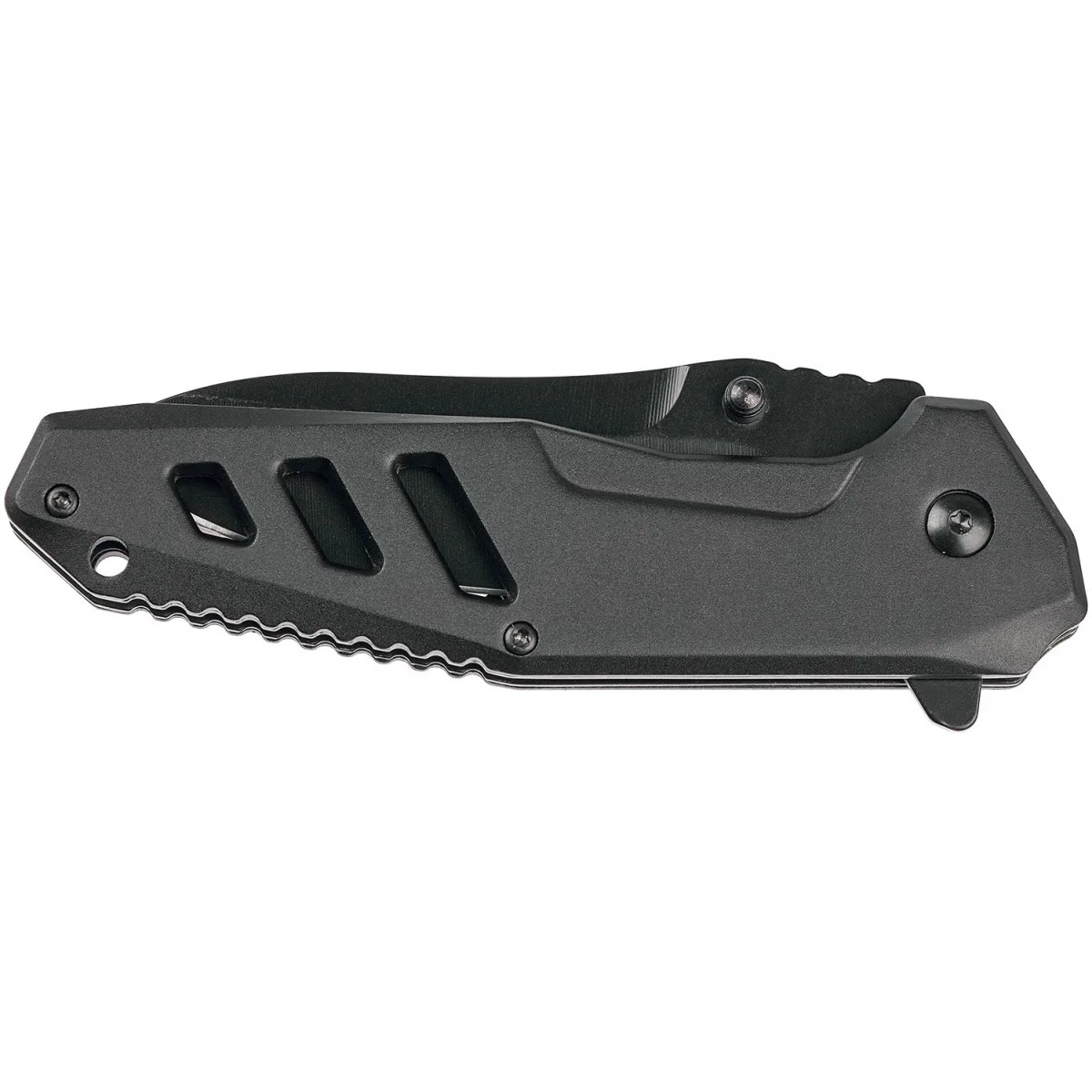 Накладки на руків’ї виконані з алюмінієвого сплаву. Для полегшення маси виробу в руків’ї були зроблені 3 отвори, які вносять свій внесок в оригінальний дизайн ножа. Також є отвір для темляка, а також сталева кліпса для перенесення ножа в положенні Tip-down.