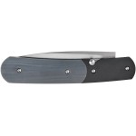 Boker Plus Dogleg Auto - нове творіння ножового концерну Boker спільно з дизайнером Стеном Мойзісом. Модель являє собою компактний, джентльменський ніж для щоденного використання. Клинок профілю Drop Point виготовлений із міцної, зносостійкої сталі D2. Фінішна обробка - філігранний сатин із найтоншими, як волосинка, лініями. Приводиться в робоче положення і закривається за допомогою зручної кнопки в заглибленні руків’я. Легкий вигин руків’я з двоскладовими накладками з нержавіючої сталі чорного кольору і G10 сірого, комфортно лягає у руку. На торці розміщена дротяна кліпса для прихованого носіння.