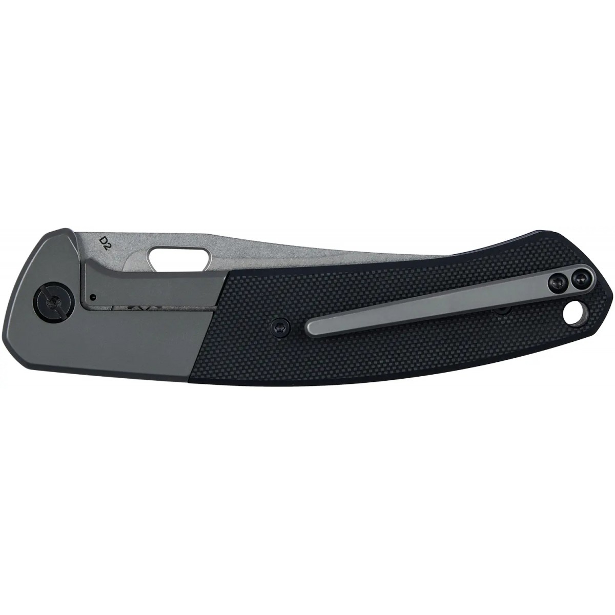 Клинок профілю Clip Point виготовлений з інструментальної сталі D2 та має обробку Stonewash, яка захищає клинок від зовнішнього впливу та маскує сліди експлуатації. Клинок надзвичайно легко відкривається завдяки підпальцевому отвору та системі шарикопідшипників. У відкритому стані надійно фіксується замком Frame Lock, який завдяки простій конструкції, ідеально підійде для використання в польових умовах.