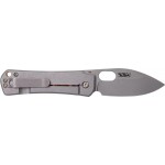 Клинок ножа виготовлений у формі Drop point з обробкою Stonewash. Він має широкий профіль і фальшлезо, а це дозволяє проводити довгий різ і ефективний укол. Клинок виконаний з твердої інструментальної сталі D2. Відкривається він за допомогою підпальцевого отвору, фіксується замком Framelock.