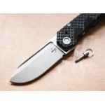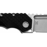 Руків’я виконане зі склотекстоліту G10 з виразною мозаїчною текстурою. Конструкція передбачає додатковий знімний штифт безпеки, що запобігає випадковому відкриттю чи закриттю ножа. Наявність отвору для темляка із вбудованим склобоєм розширює функціональні можливості ножа. Масивна кліпса дозволить зручно носити ніж на кишені.