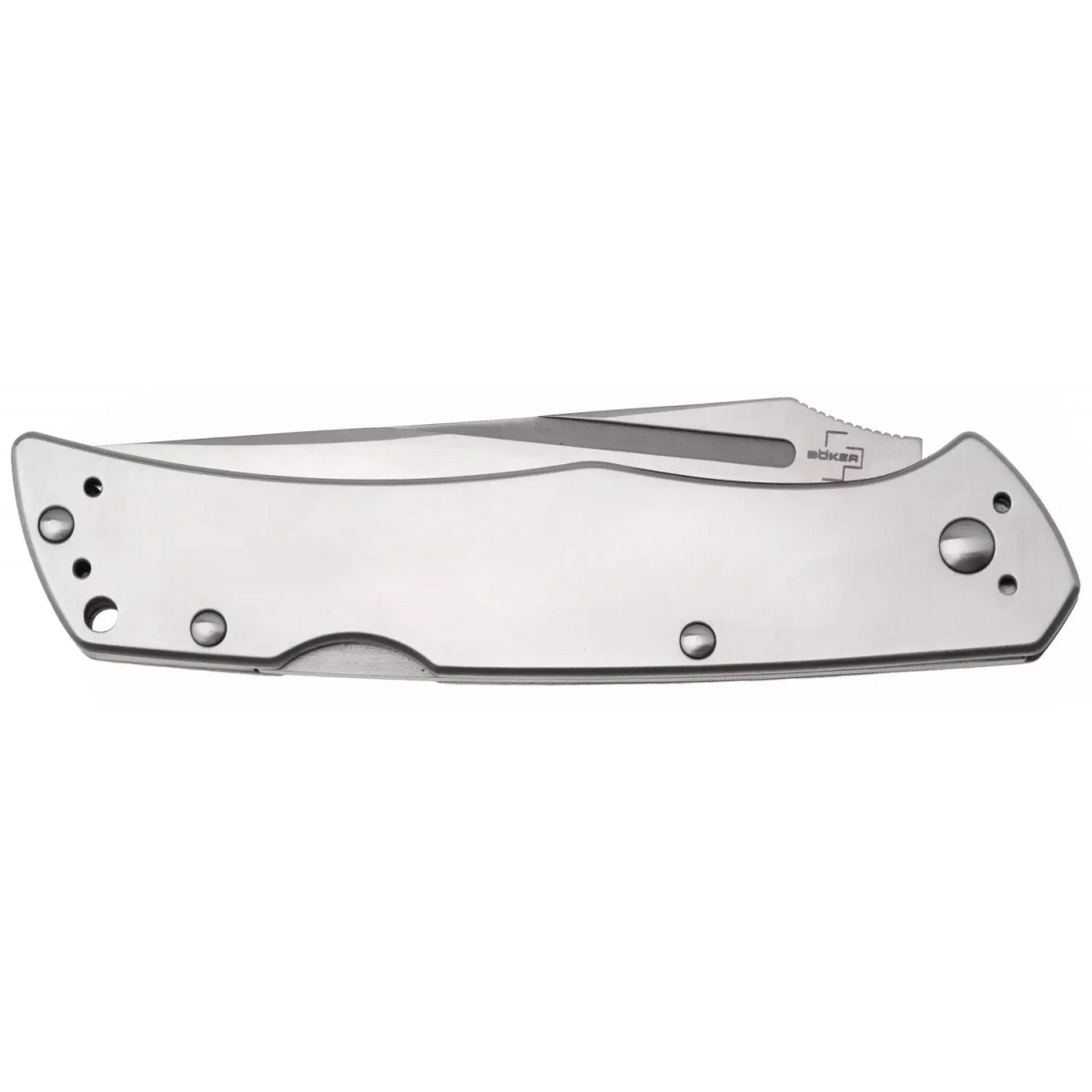 Boker Plus MEK – міцний та функціональний EDC ніж, розроблений Boker у співпраці з німецькою зброярнею Hansa Jagdausrüstung у місті Бремен. Клинок профілю Drop Point виготовлений зі сталі Nitro-V з сатиновим фінішем. Приводиться в робоче положення за допомогою нігтьової виїмки, а надійна фіксація забезпечується перевіреним замком Back Lock. Виражений упор для пальця з насічками на обуху дозволяє повністю контролювати ніж під час виконання різноманітних завдань, де важлива точність.