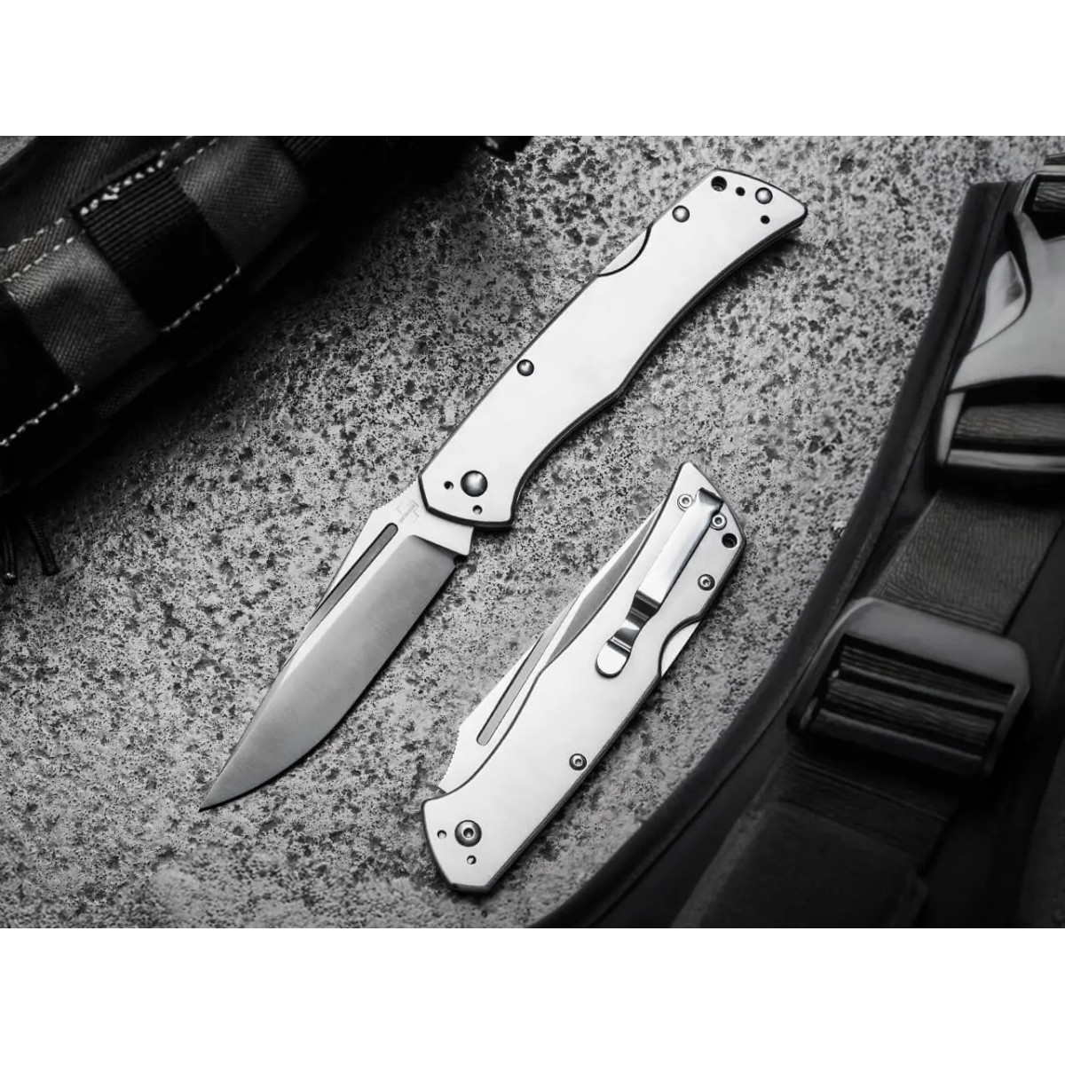 Руків’я виготовлене з нержавіючої сталі 2Cr13, яка використовується, зокрема, в хірургічних інструментах, а тому витримує значні навантаження та гарантує тривалий термін використання. Ніж оснащено чотирьохпозиційною кліпсою та отвором під темляк, що значно розширює варіації для зручного носіння ножа на EDC.