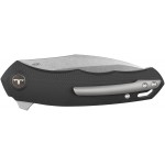 Клинок приводиться в робоче положення легким натисканням на фліпер, а плавність виходу забезпечується системою керамічних шарикопідшипників. Насічки на фліпері гарантують краще зчеплення під час відкривання клинка. Осьовий гвинт відполірований з лицевої сторони і прикрашений логотипом бренду із торцевої. Фіксується клинок у відкритому положенні простим, але надійним замком Liner-Lock. На лайнері розміщений «сухарик», який зменшує тертя клинка об лайнер, що значно продовжить службу фіксуючого механізму.