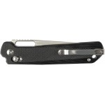 Накладки на руків’ї виготовлені з міцного склотекстоліту G10, який забезпечує довговічність і відмінне зчеплення. На руків’ї передбачена кліпса глибокої посадки, яка дозволяє непомітно носити ніж у кишені та отвір під темляк.