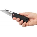 У створенні дизайну нової моделі ножа CJRB Ruffian брав безпосередню участь найфмейкер Дірк Пінкертон та успішно втілив свої ідеї у життя. Ruffian — міцний складаний ніж з клинком профілю Wharncliffe. Для його створення послужила фірмова сталь компанії — AR-RPM9 (Artisan-Rare Powdered Material 9 Element Steel). Ексклюзивна сталь має однорідну структуру, яка дозволяє зберігати гостру різальну кромку протягом тривалого періоду, проста в правці і відмінно витримує навантаження. Фінішна обробка клинка може відрізнятися залежно від моделі. Це може бути, як і обробка Stonewash, що приховує дрібні подряпини, так і чорне PVD (Physical Vapor Deposition) покриття, яке захищає сталь клинка від корозії. Відкривається за допомогою об’ємного підпальцевого отвору, а фіксується в робочому положенні за допомогою надійного замка Liner Lock. Ергономічні накладки на руків’ї виконані зі склотекстоліту G10. Для максимальної зручності носіння передбачена 4-х позиційна кліпса.