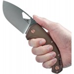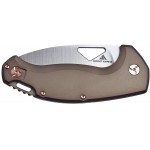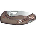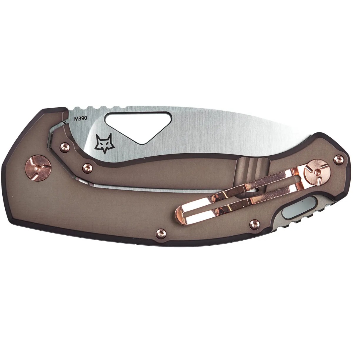 Fox El Capitan - це потужний складаний ніж, розроблений дизайнером Томмазо Румічі. Клинок виконаний із преміальноїї нержавіючої сталі M390 твердістю 59-61 HRC, у профілі Drop Point. Фініш сатиновий, антибліковий. більш бюджетні моделі виконані з інструментальної сталі D2 та можуть мати різноманітне покриття для захисту клинка. На обусі клинка передбачені дрібні насічки для упору великим пальцем. У робоче положення приводить клинок зручний підпальцевий отвір. Фіксується у відкритому вигляді за допомогою замка Frame Lock, інтеграція якого додає надійності під час використання. Накладка руків’я може бути виконана з авіаційного алюмінію, мікарти або склотекстоліту G10. Для зручності під час утримання на накладці передбачені плавні виїмки під пальці. Кишенькова кліпса дозволить зручно носити ніж на кишені. На торці розміщений отвір для темляка.