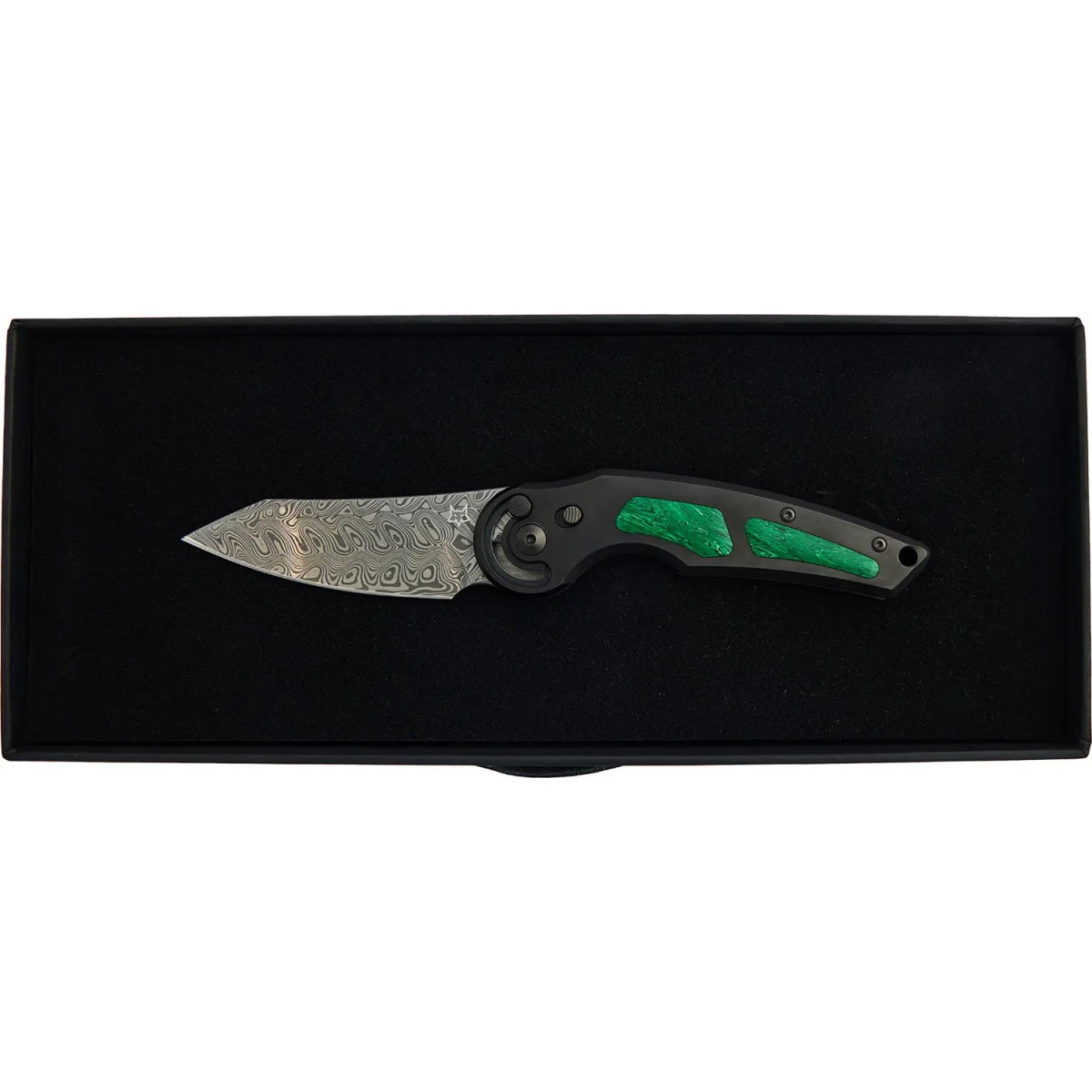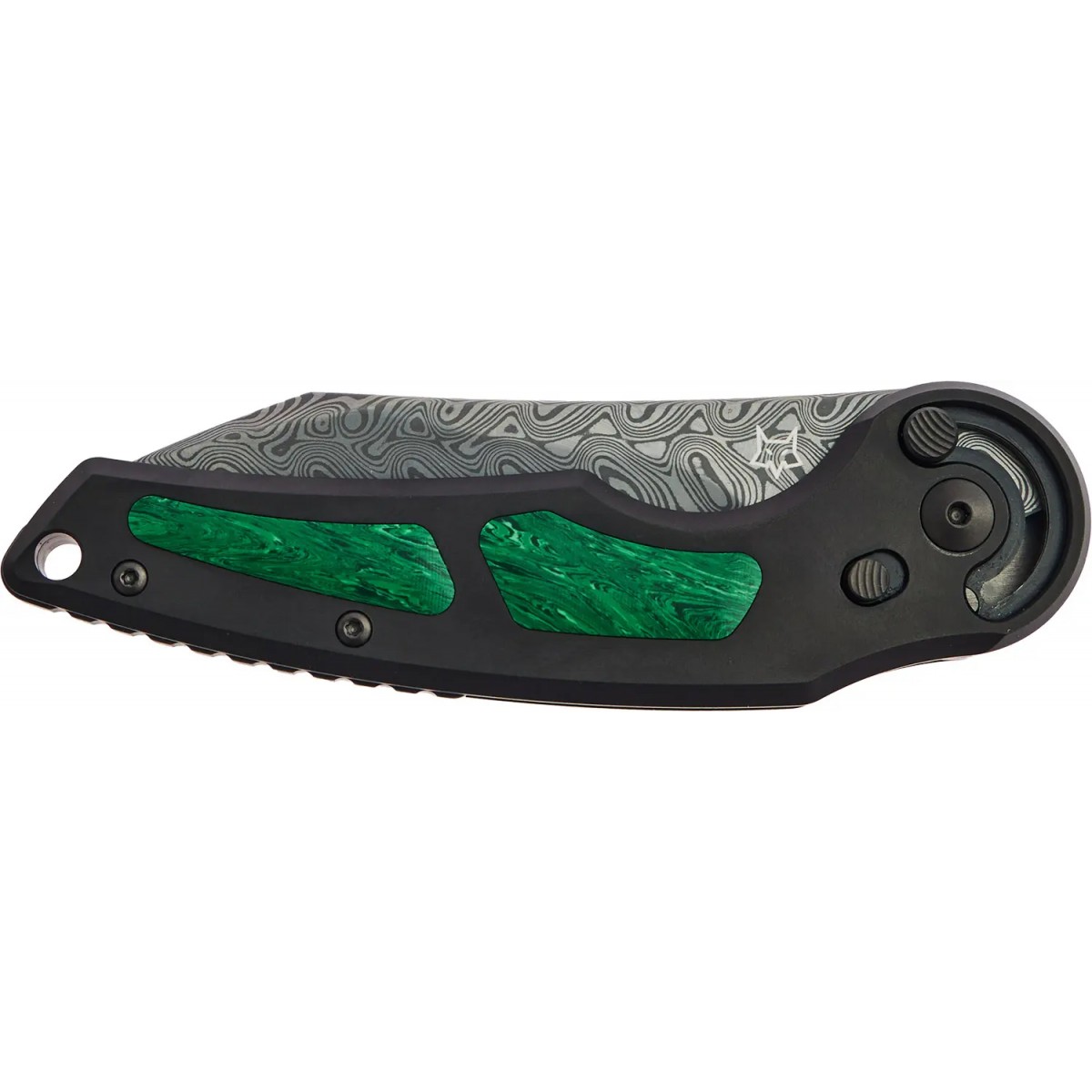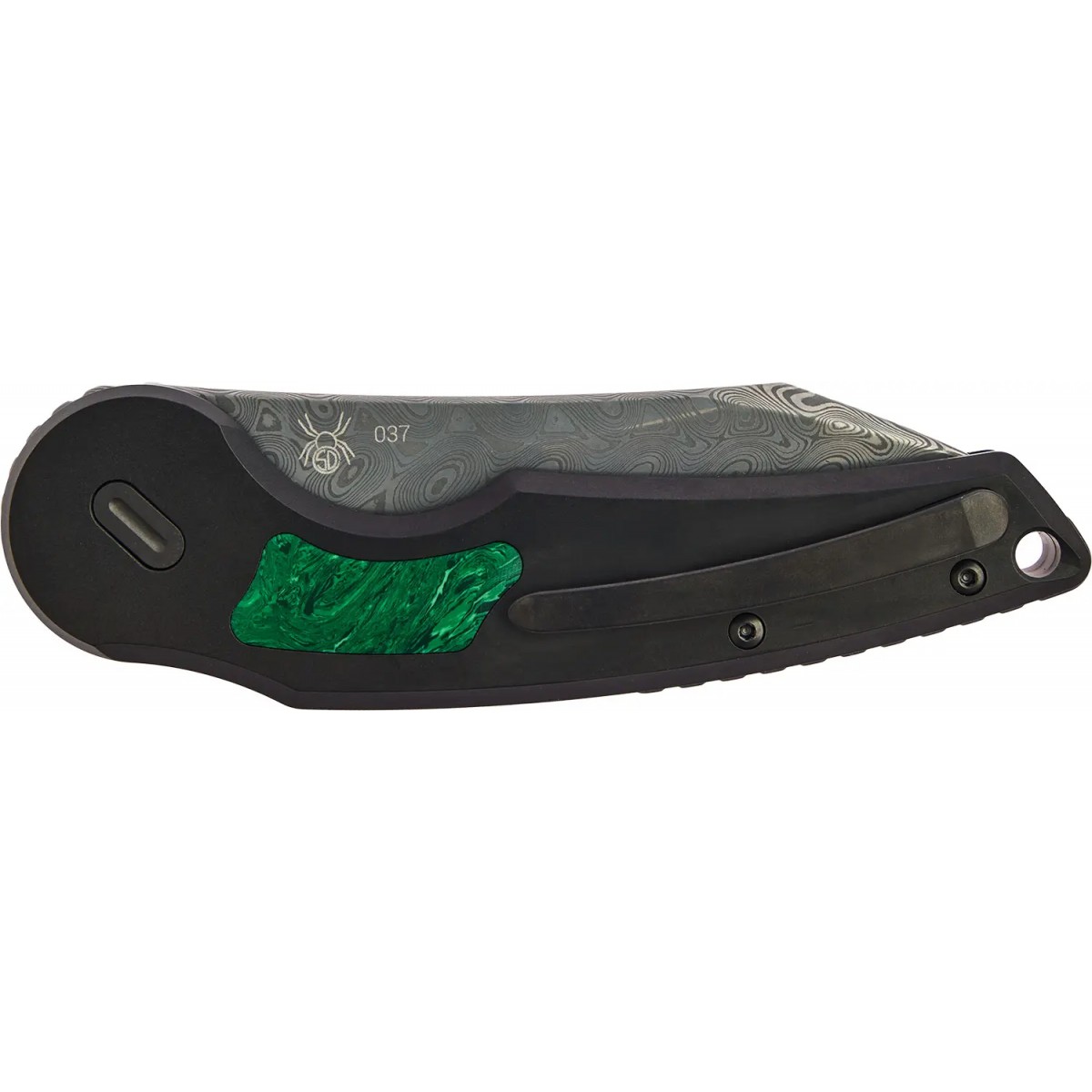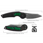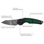 Дана модель має клинок з дамаської сталі Hakkapella Damascus та оснащена титановим руків'ям з малахітовими вставками.