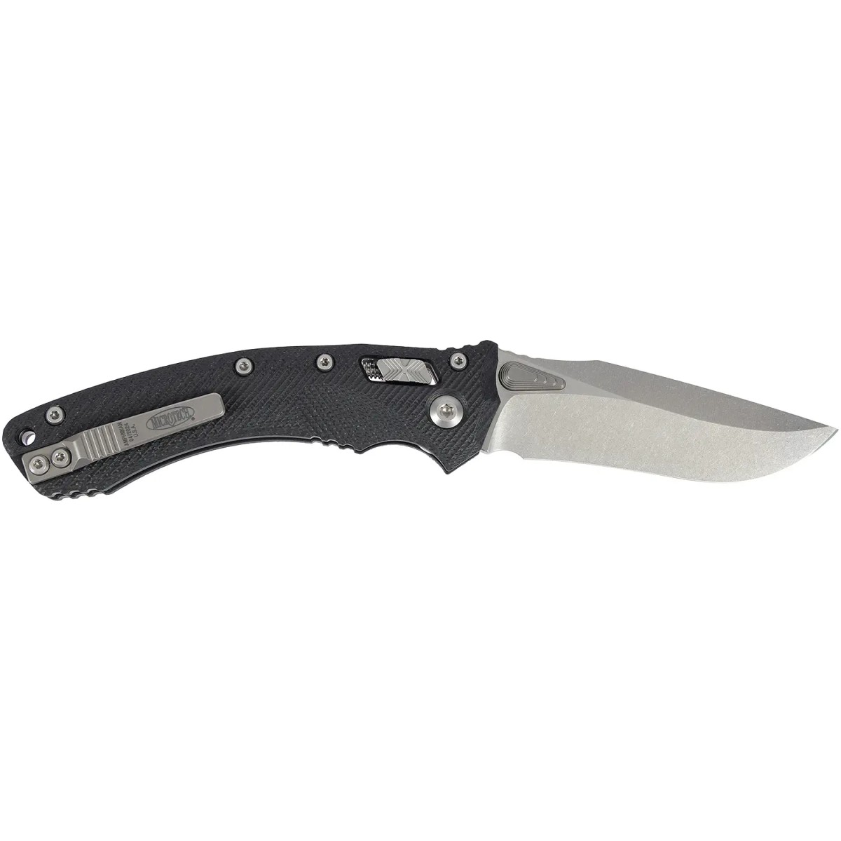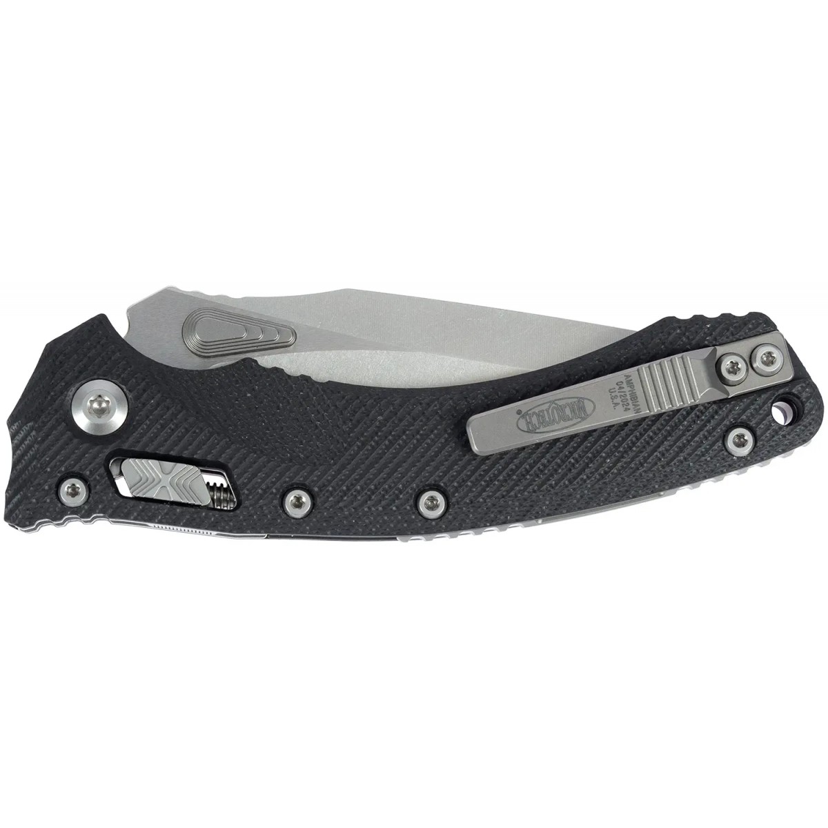 Ніж отримав клинок з преміальної фірмової сталі Microtech - Bohler M390MK, який приводиться в робоче положення завдяки класичному шпенику, що перекочував з оригінальної моделі. У відкритому положенні ніж надійно фіксується замком Ram-Lok - новинкою бренду Microtech. Замок оперується за допомогою двосторонньої кнопки X-Button, що робить цей ніж повністю амбідекстерним, не вносячи компромісів у конструкцію.