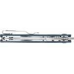 Клинок виконаний з легованої мартенситної сталі марки N690, загартованої до твердості 58-60 HRC, яка відрізняється гарною корозійною стійкістю та здатністю витримувати ударні та бічні навантаження. Профіль клинка Clip point забезпечує хорошу проникаючу здатність при колючому ударі, а прямі спуски майже від середини клинка сприяють агресивному різу. Відкривається ніж за допомогою підпальцевого отвору або фліпера та надійно фіксується у робочому положенні сталевою пластиною замка liner lock. Залежно від моделі, клинок має обробку Stonewash або Black Stonewash.