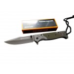 Складний інерційний ніж Browning FA45 Olive — багатофункційний фліппер з напівавтоматичним викидним клинком, розроблений для тактичних завдань, рятувальних операцій і виживання. Пружинний викид клинка при натисканні фліпа забезпечує миттєве розкриття; міцна рукоять зі склорозбивачем і кліпсою зручна для носіння. Клинок з 7Cr13MoV (55–57 HRC), довжина леза 10,2 см, загальна довжина 23,5 см, вага 240 г. За відгуками власників — надійний у польових умовах.