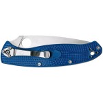 Клинок ножа виконаний із нержавіючої порошкової сталі, загартованої до твердості 59-63 HRC. Витягується клинок за допомогою традиційного підпальцевого отвору і фіксується в робочому положенні сталевою пластиною замка Liner Lock.