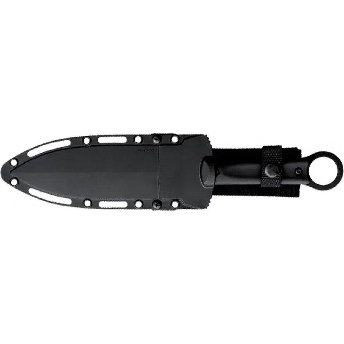 Ніж з двосічний клинком списоподібної форми виконаний з цільного шматка вуглецевої сталі 1055. Накладки на рукоять виготовлені з високоміцного поліпропілену, стійкого до ударів і впливів навколишнього середовища. На рукояті розміщено велике кільце, яке забезпечує зручність використання оберненим хватом. Також кільце можна використовувати в якості отвору для темляка.