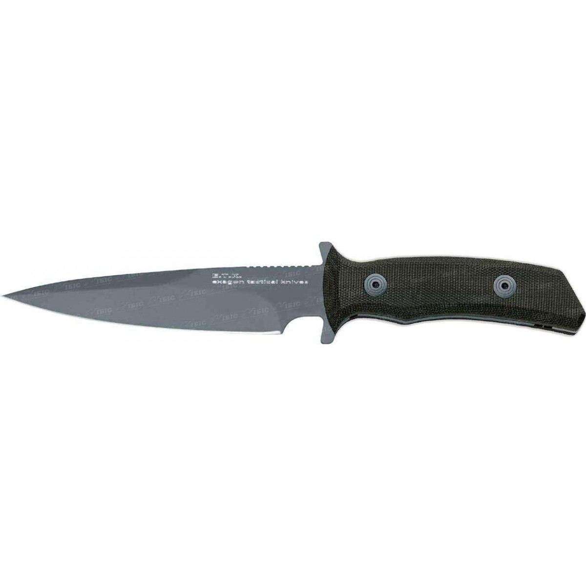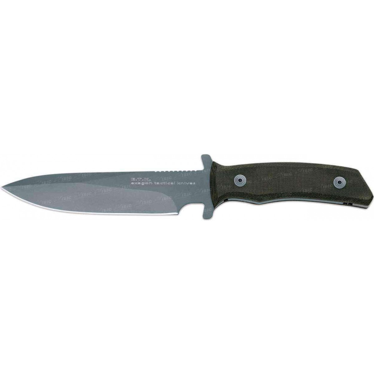 Серія Exagon Tactical (E. T. K.) складається з фіксованих ножів, які можна охарактеризувати, як багатоцільові інструменти для використання в екстремальних ситуаціях. Їх об'єднує висока міцність і прекрасні ріжучі характеристики. Сталь марки 440С гарантує тривале утримання гостроти заточки, а крім цього – високу стійкість до сольовий і кислотної корозії. І незважаючи на відносну простоту форми клинка, ножі Exagon Tactical за рахунок своєї полноразмерности забезпечують максимальну ефективність різання. У теж час, комфорт та зручність навіть при тривалому утриманні забезпечують ергономічна форма рукоятки з микарты. І знову ж показова надійність і міцність конструкції.