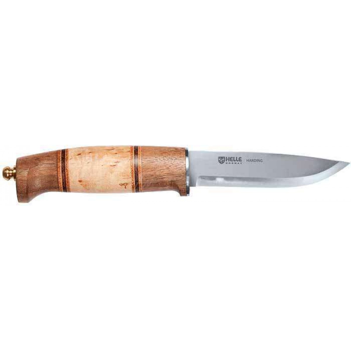 Ніж Helle Harding є традиційною мисливської моделлю з великою бочкообразной рукояттю. Сама рукоять являє собою гармонійне поєднання деревини берези і горіха, розділених між собою декоративними шкіряними вставками. Ніж оснащений високоефективним клинком з ламінованої сталі, складається з 3-х шарів. В комплекті також є піхви з фіксатором рукоятки.