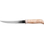 Karesuandokniven Laxen - класичний філейний ніж від шведських майстрів. Дуже гнучке лезо (товщина 1 мм ), виготовлену з нержавіючої сталі, дозволить обробляти філе малої і великої риби, витрачаючи для цього мінімум зусиль і часу. Зручна дерев'яна ручка забезпечить надійне утримання. Ніж комплектується чохлом з коров'ячої шкіри.Відгуки про Ніж Karesuandokniven Laxen