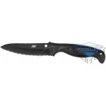 Клинок типу drop-point з антибліковим чорним покриттям TiCN(карбонитрид титану) виготовлений з хромонікелевої сталі Н-1, яка володіє високою антикорозійною стійкістю. Текстурована рукоять виконана з посиленого скловолокном нейлону(FRN) і забезпечує надійний хват.