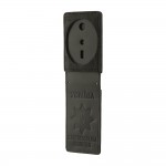 Ця модель має загалом три відділення. Справа - відділ із прозорого міцного пластику для розміщення посвідчення, далі - перегородка з металевим кільцем вгорі для кріплення ланцюжка, відкидне відділення з отворами для кріплення жетону та шкіряне відділення для розміщення візиток тощо.