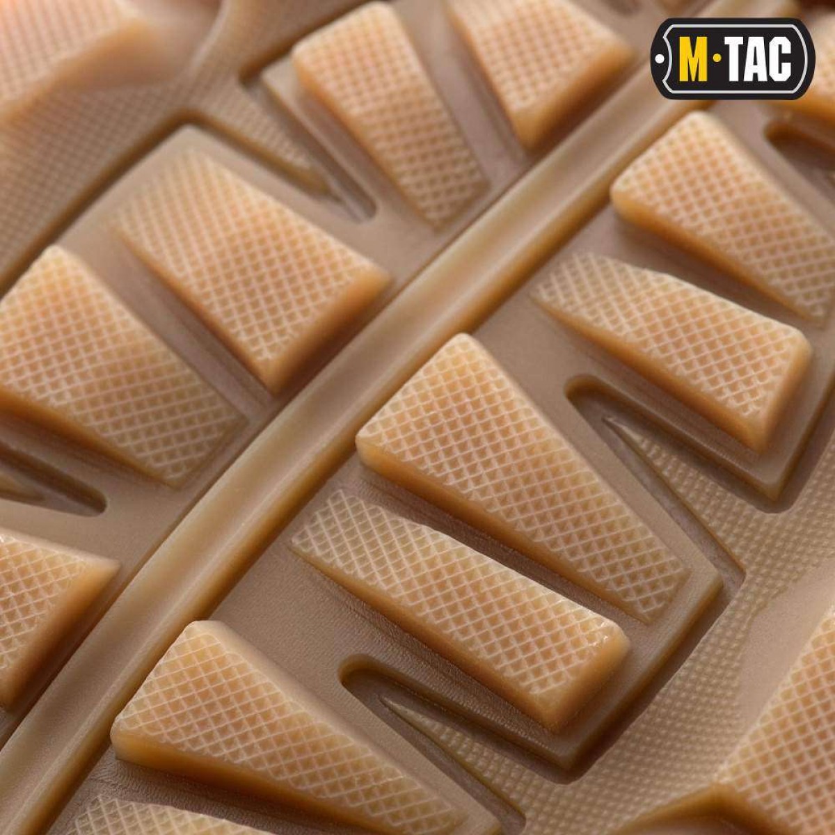 M-Tac кросівки Patrol від бренду M-Tac поєднують в собі доступну ціну і високу якість виробництва. Черевики зроблені з якісної натуральної шкіри і синтетичних матеріалів. Носок черевика посилений додаткової накладкою з шкіри з гумовим напиленням. Виробник додав гумову підошву з антимасляным протиковзким покриттям і протектором, що має необхідну твердість для переміщення по пересеченой місцевості, а так само володіє достатньою м'якістю для комфорту та амортизації.