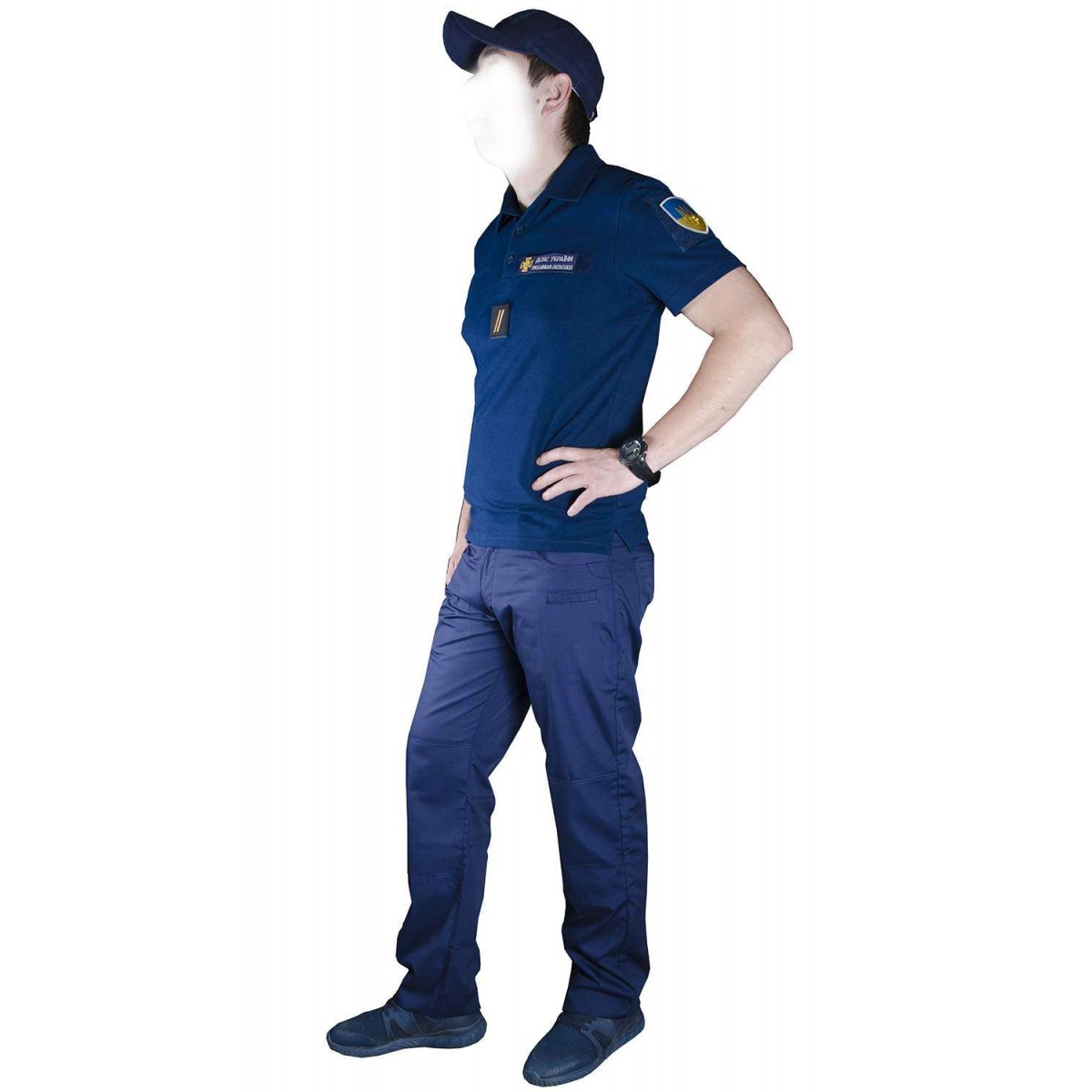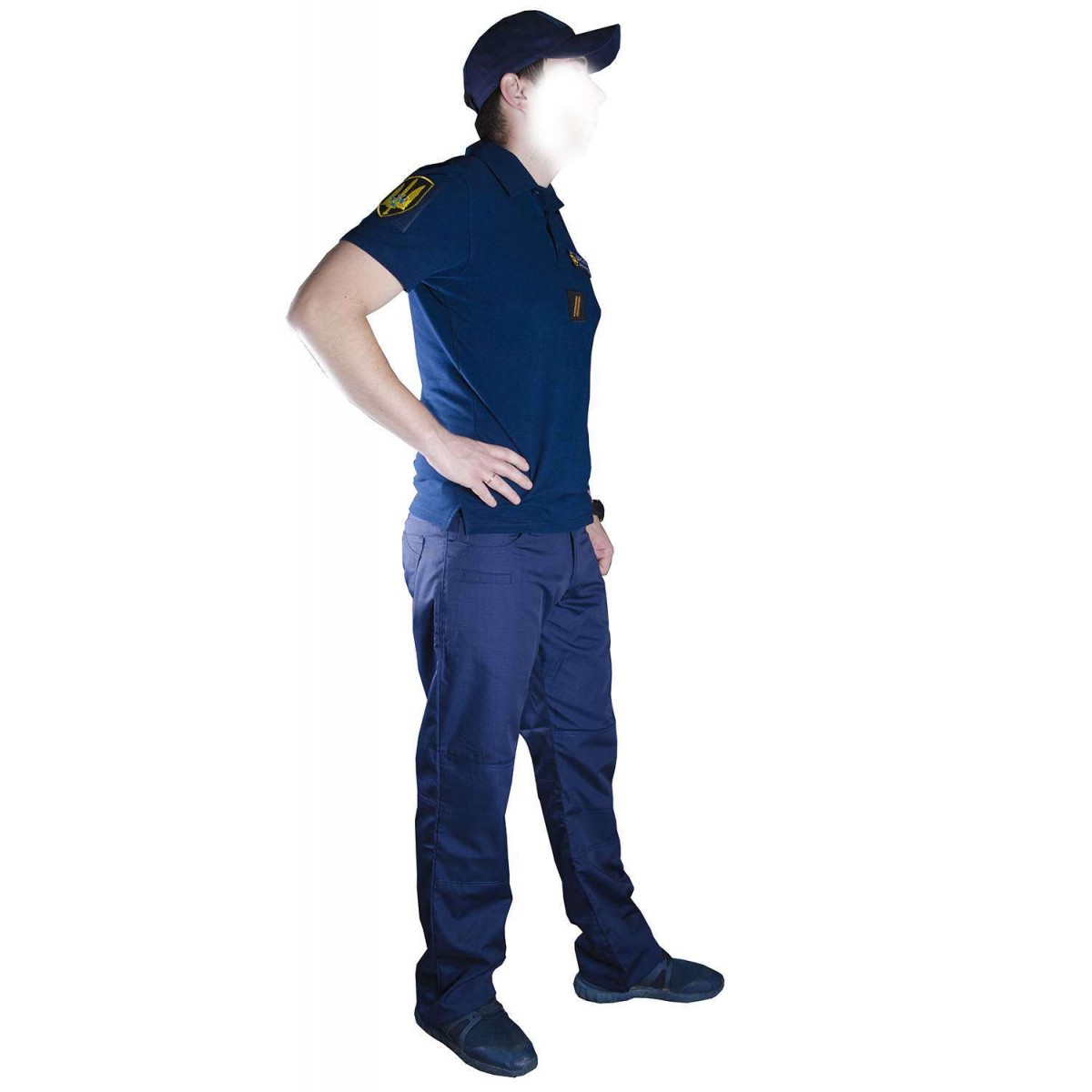 В комплект входить: футболка поло, штани і бейсболка.