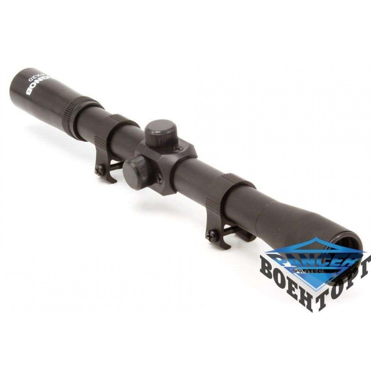 Comet 4×20 відноситься до тих оптичним прицелам, які можна встановлювати на пневматичні (пружинно-поршневі, малопотужні) та газобалонні гвинтівки. Для цього у даного прицілу передбачені кріпильні низькі кільця.