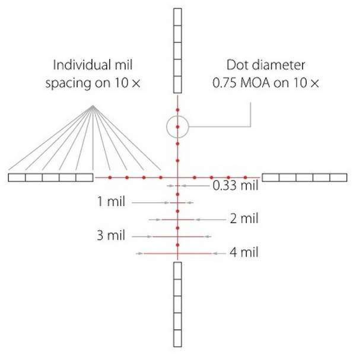 AMX IR - спеціальна дальномірна сітка, розроблена компанією Hawke Optics для стрільців з пневматичного зброї, вона являє собою вдосконалену сітки Mil Dot. Головна відмінність від звичайної прицільної марки Mil Dot полягає в тому, що в нижній частині поля зору є додаткові перетину у вигляді горизонтальних ліній різної довжини, відзначають підлогу мила. Це дозволяє вести більш прицільну стрільбу на великі дистанції, приймаючи поправку на вітер і враховувати складну траєкторію польоту кулі пневматичної гвинтівки. Mil Dot з нижніми горизонтальними перетинами має червоне підсвічування. Бічні порожнисті прямокутні області служать для масштабування місцевості. Всі компоненти цієї сітки мають строго регламентовані розміри, відстані між усіма елементами також регламентовані. Довжина нижніх перетинів дорівнює 0,33, 1, 2,3,4 Mil відповідно. Дана сітка AMX вірна при 10-кратному збільшенні. Для інших збільшень лінійні і кутові розміри визначаються методом інтерполяції, або за спеціальними таблицями. Також персональну адаптацію сітки під конкретне збільшення, зброю і тип снаряда дозволить здійснити безкоштовний балістичний калькулятор X-ACT