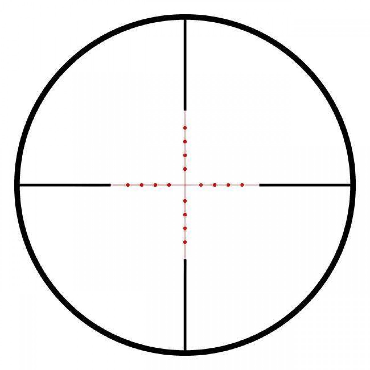 1/2 Mil Dot IR - універсальна сітка для максимально точного прицілювання на різних відстанях. Головна відмінність від звичайної прицільної марки Mil Dot полягає в тому, що тут є додаткові перетину, відзначають підлогу мила. Всі компоненти цієї сітки мають строго регламентовані розміри, відстані між усіма елементами також регламентовані. Завдяки цьому не проблема визначити відстань до цілі або розміри мети, прийнявши при цьому правильну поправку на вітер і визначити траєкторію падіння кулі. Даний 1/2 Mil Dot вірний при 10-кратному збільшенні. Для інших збільшень лінійні і кутові розміри визначаються методом інтерполяції, або за спеціальними таблицями. Персональну адаптацію сітки під конкретну зброю і тип снаряда дозволить здійснити безкоштовний балістичний калькулятор Hawke BRC