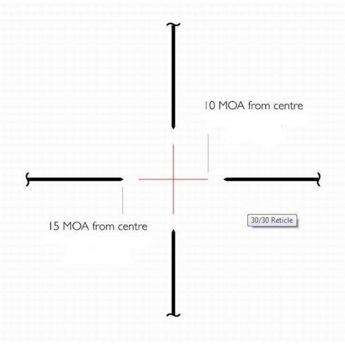 Прицільна сітка 30/30 або Duplex є однією з найбільш відомих, простих і популярних. З її допомогою можна вирішити відразу кілька завдань. Товсті зовнішні лінії легко дозволяють "вести" велику мішень і вистрілити по ній навскидку. Тонкі лінії дають можливість точного прицілювання в невелику мішень. Тонке перехрестя сітки 30/30 не затінює мета і не зливається з темним фоном. Відстань між протилежними тонкими лініями сітки відповідає 30 дюймів на 100 ярдів при збільшенні 4х, що також дає можливість приблизної оцінки дистанції до мети. Для іншої кратності значення дальності розраховуються методом інтерполяції або з допомогою балістичного калькулятора