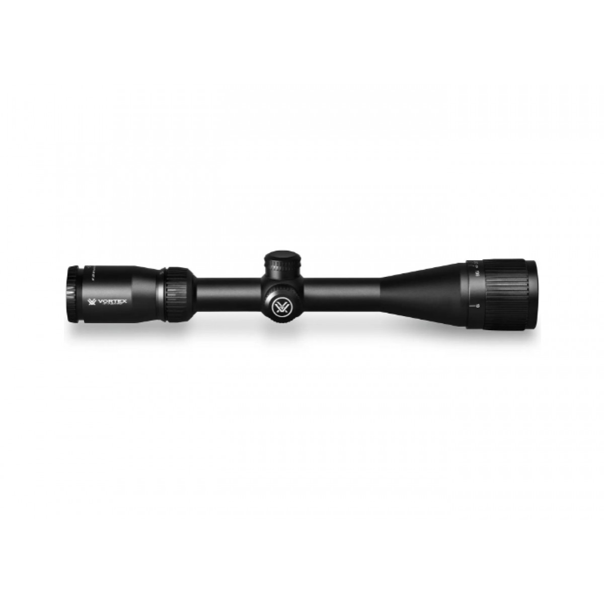 Маючи в своєму розпорядженні збільшеною фокусною відстанню вихідної зіниці, механізмом швидкого фокусування Fast Focus, механізмом відбудови паралаксу на об'єктиві, повним багатошаровим просвітленням оптики та обнулюваними барабанами введення поправок, даний приціл сконструйований без компромісів і за своїми характеристиками залишає далеко позаду більшості. Міцний монолітний корпус з авіаційного алюмінію з анодованим покриттям захищений від подряпин, вологи, пилу та запотівання. Універсальна прицільна сітка Dead-Hold BDC дозволяє швидко визначити траєкторію падіння кулі на різних дистанціях та прийняти необхідні поправки по вертикалі та горизонталі. Додатково комплектацію розширено сонцезахисною блендою. Приціл Vortex Crossfire II 4-12x40 AO (BDC) рекомендований для полювання та спортивної стрільби на середні та дальні дистанції з потужної пневматичної, а також нарізної зброї під патрони центрального бою та кільцевого займання калібром до.308 WIN включно.