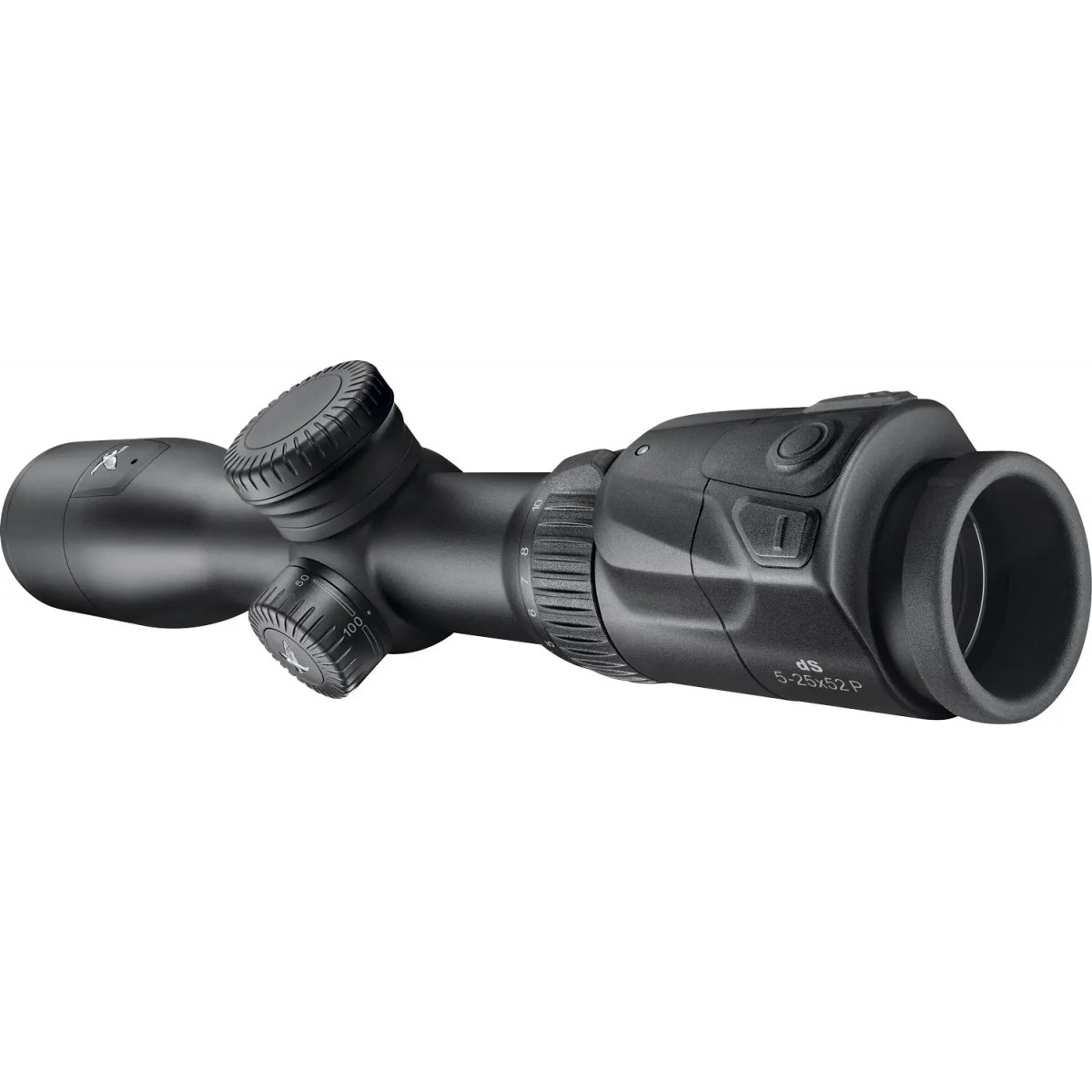 Swarovski dS 5-25x52 P – інноваційний приціл, призначений для стрільби на різні дистанції: від 30 до 1375 м, з можливістю вимірювання кута /- 60 градусів, з мінімальними витратами на складні балістичні розрахунки.