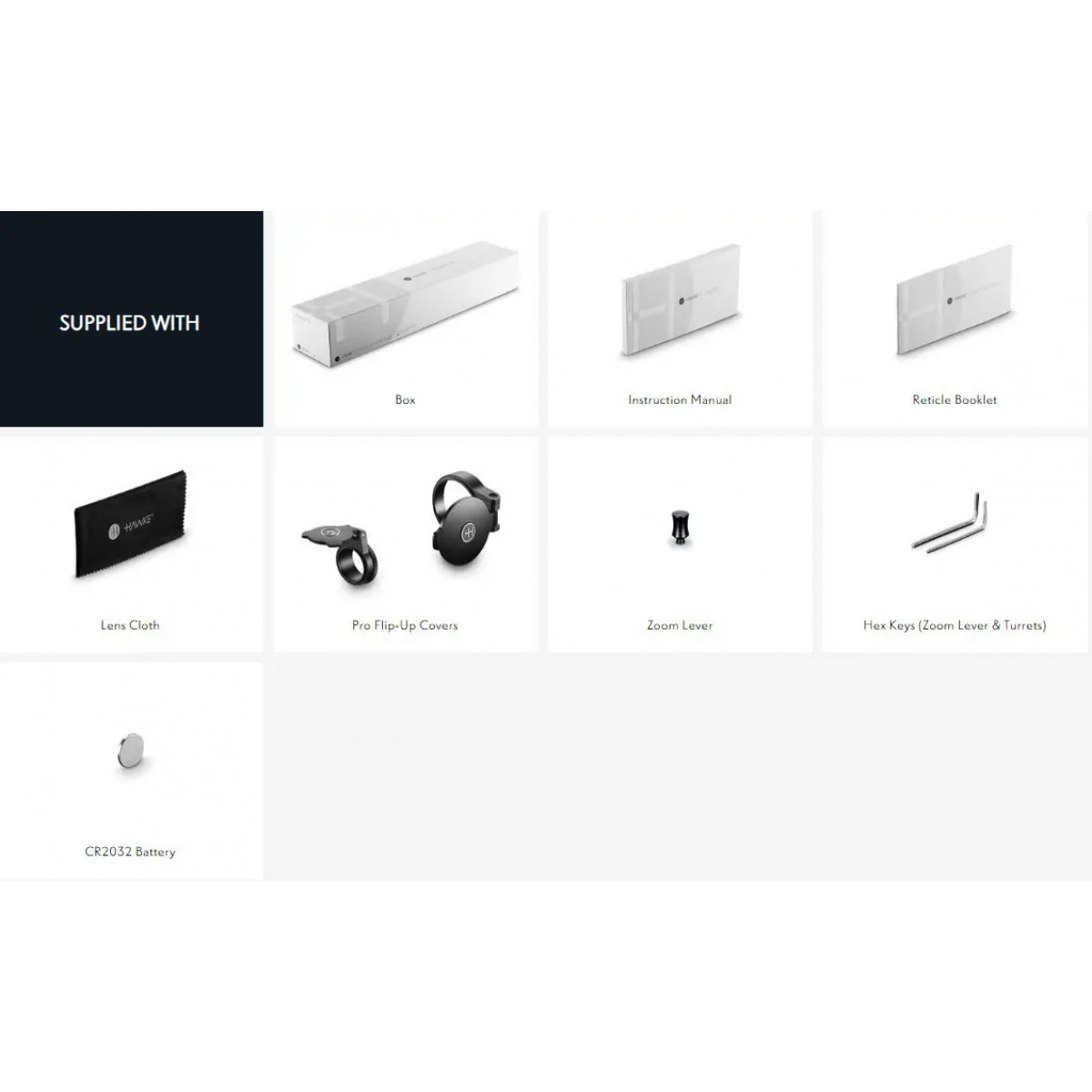 Прицільна сітка Tactical Dot, марка нанесена на скло методом травлення і знаходиться в другій фокальній площині. Для більш комфортного використання оптичного прицілу в будь-який час доби, приціл має 6 рівнів підсвічування.