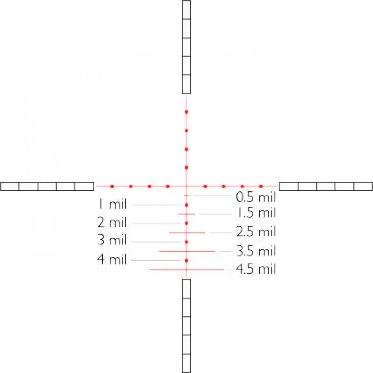Приціл комплектується боковим колесом фокусування 4 ", сонцезахисною блендою і металевими відкидними захисними кришечками.