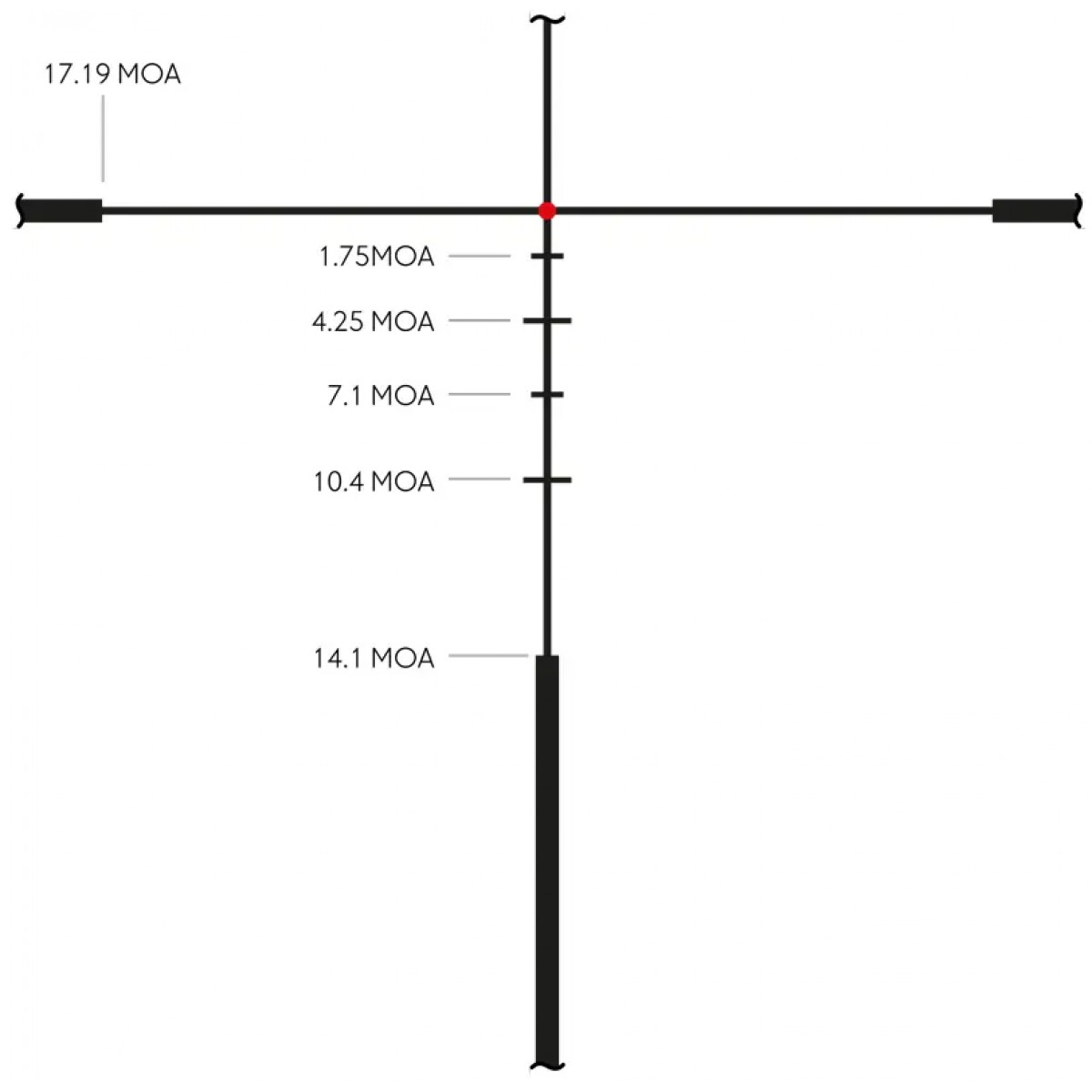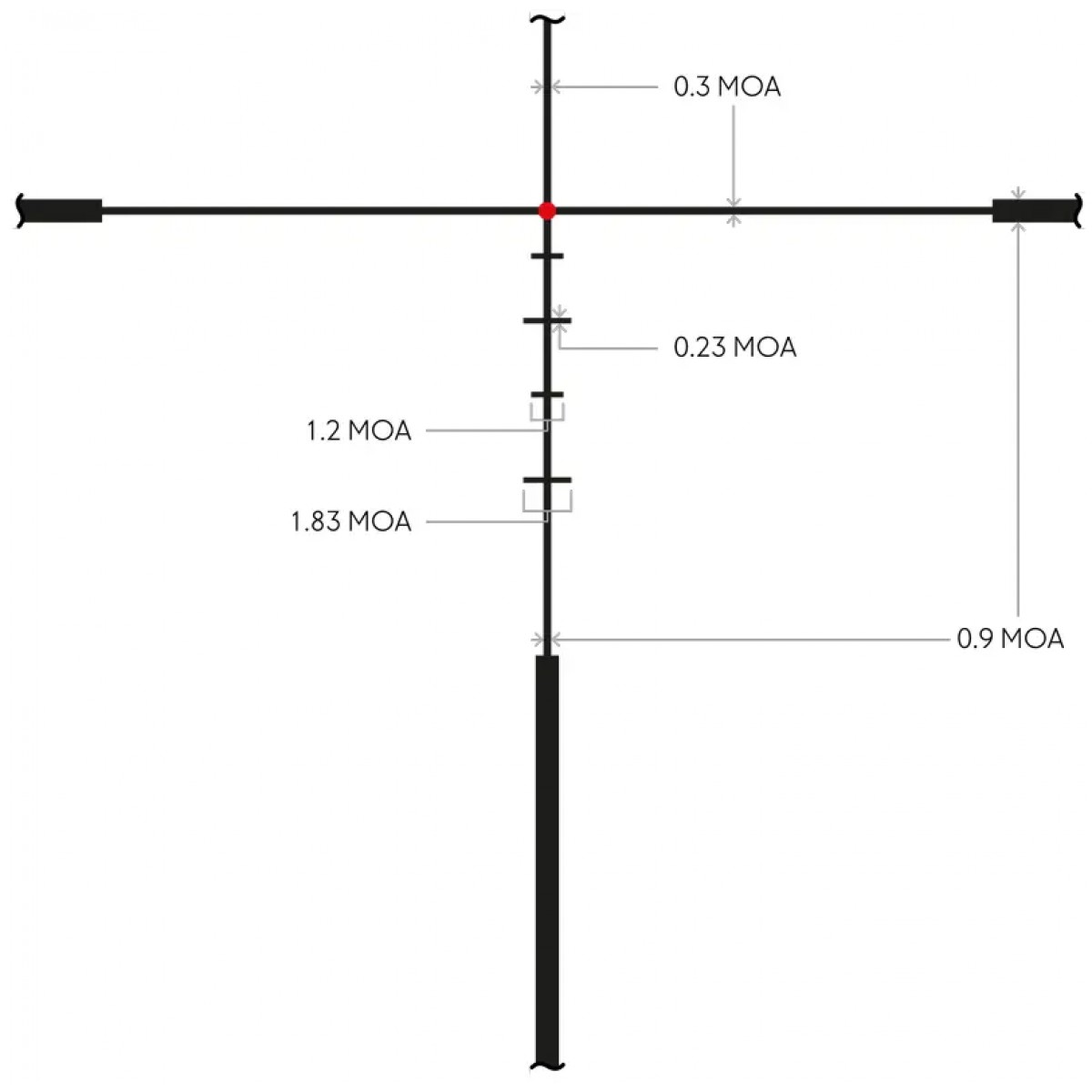 Модель оснащена прицільною сіткою LR2 FD, що є модернізованим варіантом класичної L4. Вона має більш відкриту конструкцію зовнішніх товстих ліній, що дає змогу краще бачити ціль під час прицілювання, і доповнена додатковими поділками для внесення поправок. Підсвічування реалізовано через оптичне волокно: LED‑джерело світла передає яскравий промінь безпосередньо у центр сітки, створюючи чітку точку прицілювання навіть при денному освітленні.