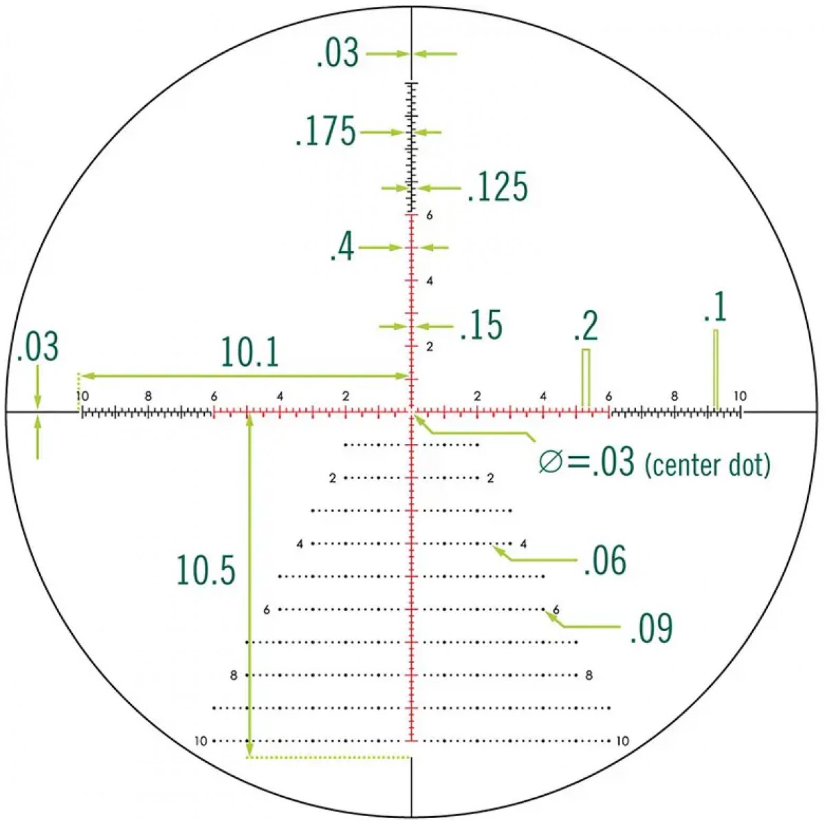 Нова прицільна сітка EBR-7D розроблена спеціально для стрільців високоточників і розташована в першій фокальній площині. Барабани L-Tec+ з функцією Zero System і мікроналаштуванням забезпечують надшвидке повернення до пристрілювального нуля. Міцний корпус з авіаційного алюмінію гарантує надійну роботу приладу у важких польових умовах.