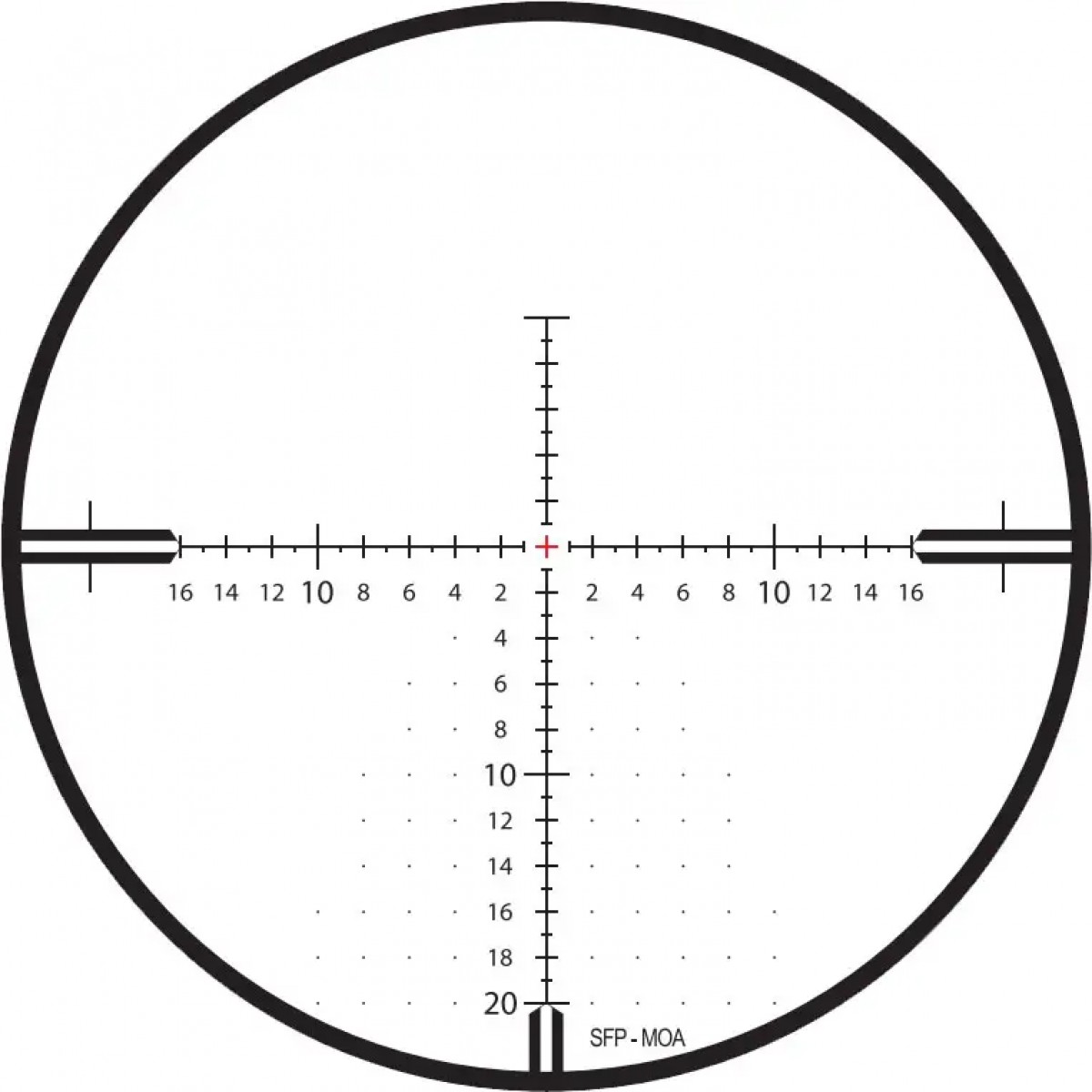 Прицільна сітка ZMOAi-T20 відмінно підходить для полювання на відкритій місцевості або для полювання на великі відстані. Лінії перехрестя сітки в 0,06 МОА при кратності 24х дуже тонкі і не перекривають ціль.