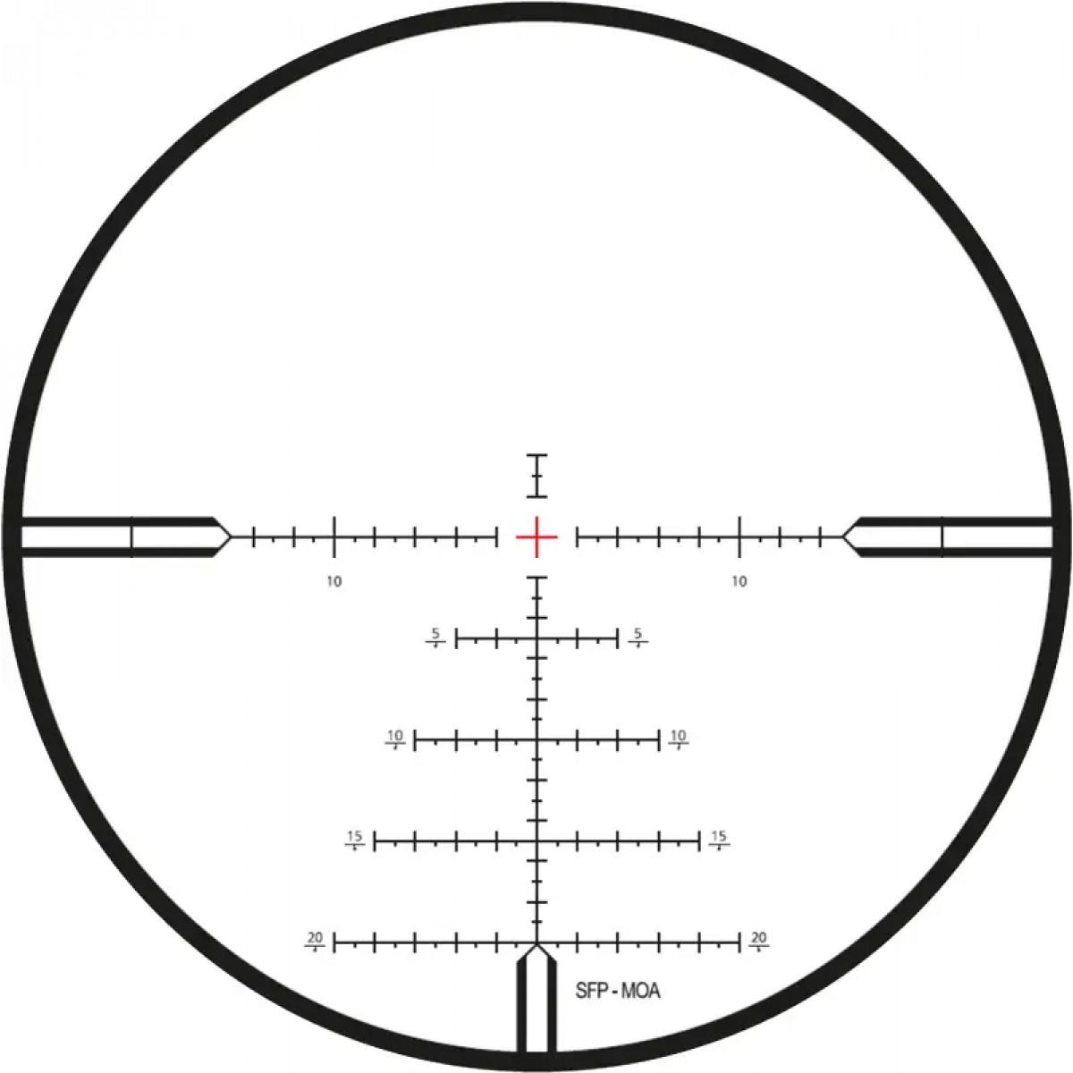 Прицільна сітка у другій фокальній площині гарантує мінімальне перекриття цілі і максимальну видимість в будь-який час доби на коротких і далеких дистанціях.