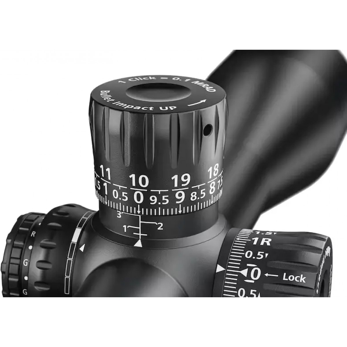 Барабанчик внесення поправки по вертикалі оснащений функцією Ballistic Stop для повернення до пристрілювального нуля. Функція блокування барабана внесення горизонтальних поправок запобігає його випадковому обертанню.