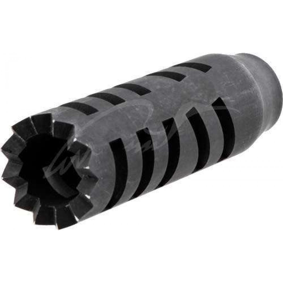 Дулове гальмо-компенсатор Fabarm, для помпових рушниць Fabarm STF/12 (з різьбою на кінці ствола). Скорочує імпульс віддачі і подброс, роблячи стрілянину більш комфортною, а зброю – керованим.Є зубчаста «корона» - пристосування тактичних рушниць бійців поліцейських спецпідрозділів. Використовується для відстрілу дверних замків і петель (нею зброя впирається в ціль).