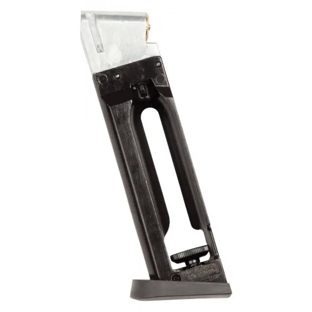Для зручності та надійності утримання руків’я оснащена рельєфними гумовими накладками. Гумова також і база магазина, що захищає його при випадковому падінні. Магазин, витягають за допомогою кнопкового механізму, служить одночасно і місцем фіксації балона СО2.