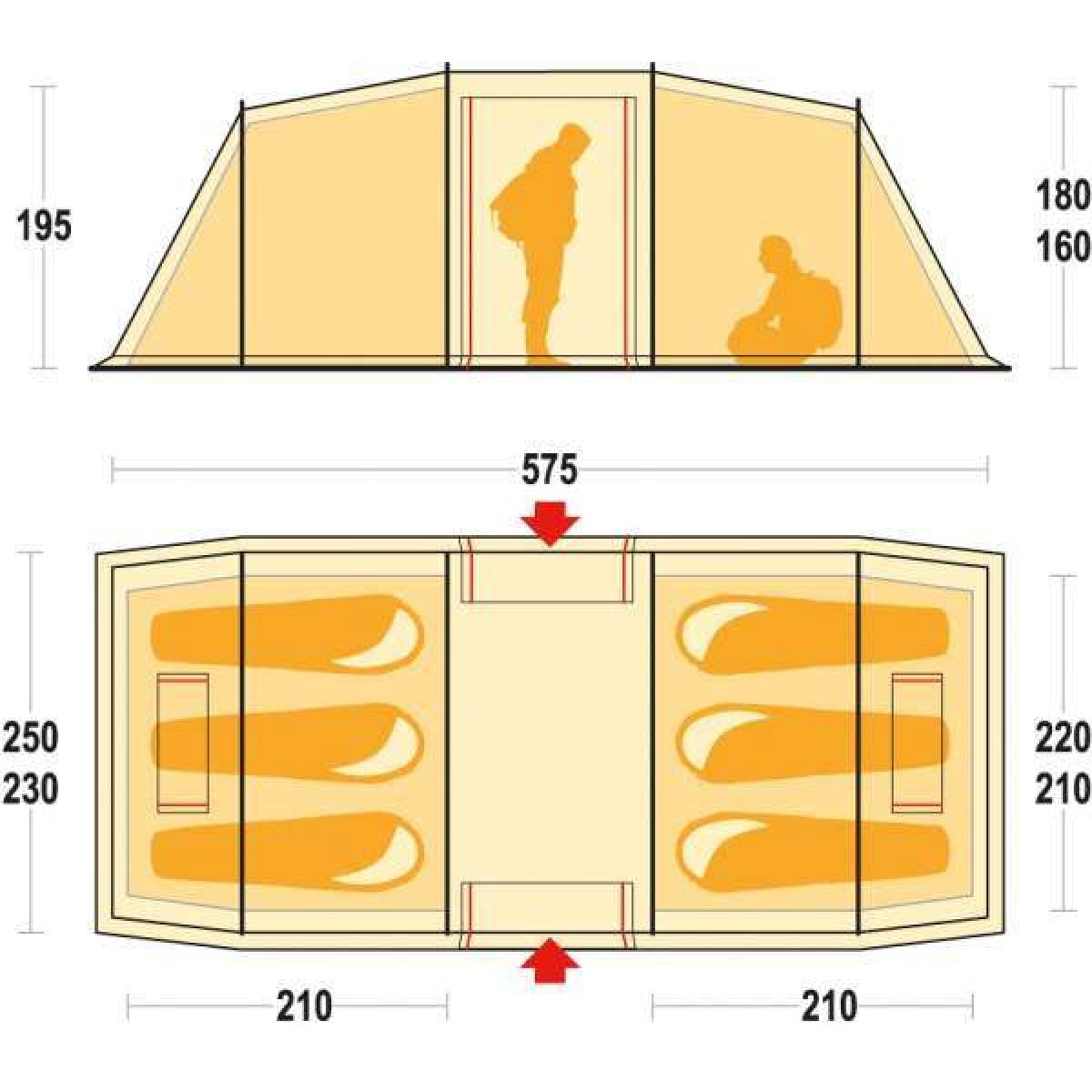 - Всередині намет розділена тамбуром на 2 окремих спальних приміщення, забезпечуючи необхідний рівень комфорту і приватності
